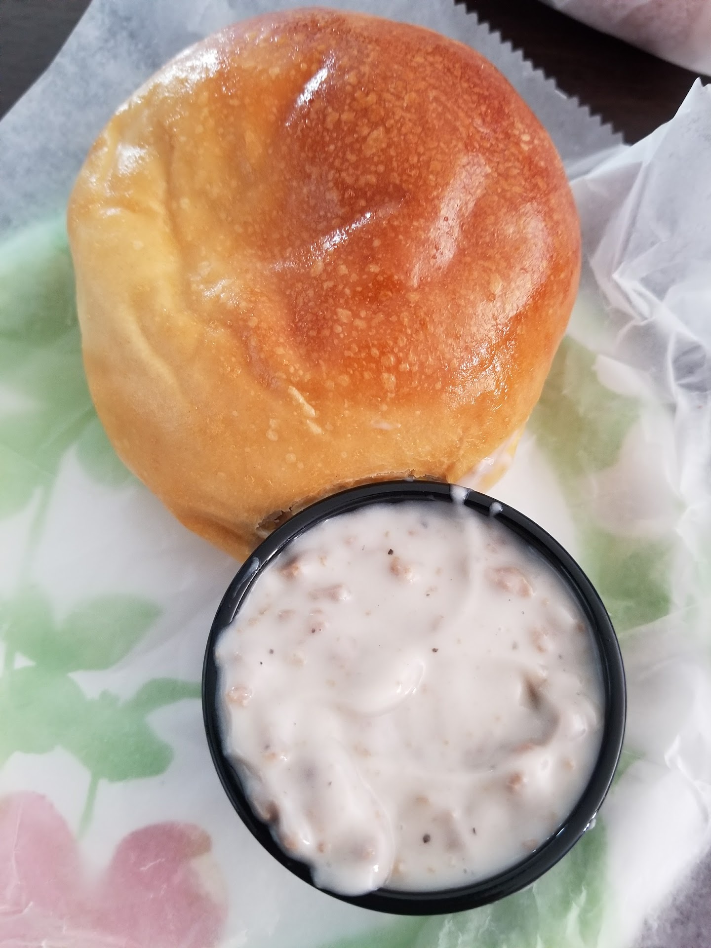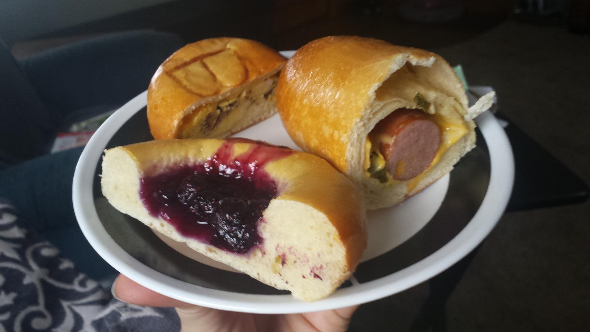 Jalapeno Sausage: So to be upfront, I am NOT a sausage person, or a hot dog person. They just don't appeal to me unless they've been roasted over a campfire. However, the mister loves them, so we got one to try. I'm really glad we did. I ACTUALLY liked it. A lot. The sausage had a nice "pop" when you bit into it, the jalapeno was present but not overwhelming, and the dough around it wasn't soggy like I would have expected. A++