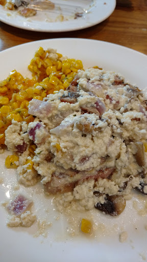 Read moreThe kids eat free in September promotion would be a good deal if my food was edible. My wife and daughters' food was fine (a flatbread, a wrap, and chicken tenders-hard to mess up) however my pork chops with mushroom cream sauce was nasty. The cream sauce had broken down/curdled and the corn succotash was absolutely nasty. One of those things that's so nasty I was in disbelief and let my daughters try it, and they agreed. Looking back it was poor parenting and I hope they don't get sick now. The manager did do the right thing and took it off my bill and offered a replacement, however my appetite was ruined. To top it off the service was poor and ridiculously slow, but that was obviously just our waitress. All of the other tables seemed to be getting good service. I've attached a pic of the garbage...