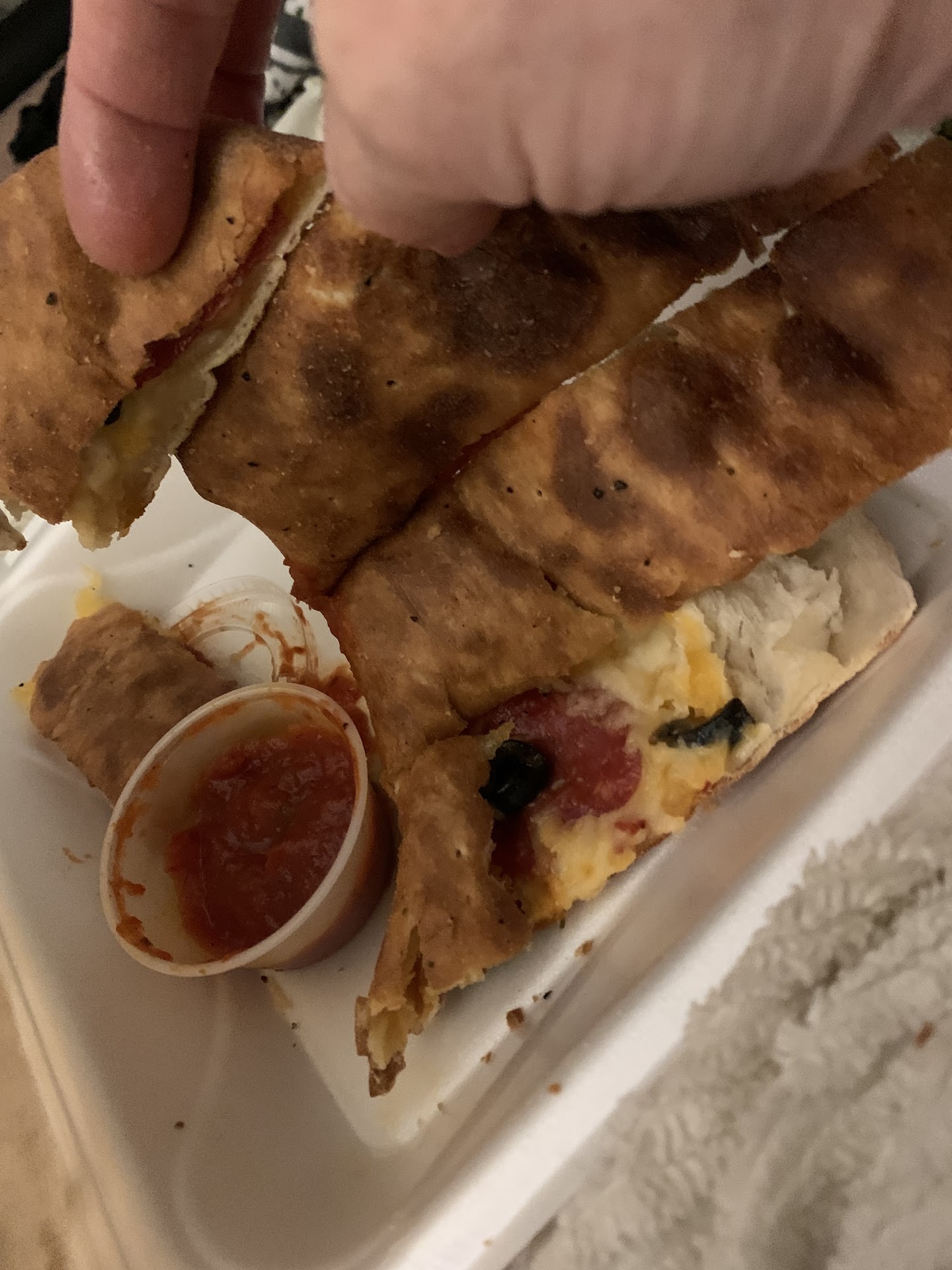 Read moreService was excellent! They weren't sure if we were in their delivery area, but they made the trip anyway, and arrived much quicker than we thought they would. Driver was great, friendly too! Kind of disappointed in a few things with the pizza though - it was supposed to be Parmesan crust and there was definitely NONE on it. The pizza was sliced very unevenly, almost like a child would have done it. It's also sad that we had to order and pay for extra meat and cheese to receive what would be considered "normal" anywhere else, even store-bought. And what is supposed to be a large is the size of a medium, again, anywhere else, including store-bought! The brownie bites were die for though, for real! And I get why you don't put the prices on your menu: 1 large, half sausage and ham w/ extra meat and extra cheese, half chicken, bread sticks, and brownie bites, plus tax and...