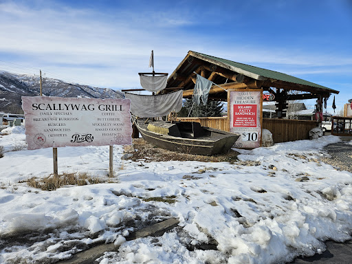 Read moreFun pirate-themed grill. We stopped in twice on our trip to Wolf Creek this week. Walk up and order at the window, then find a seat in the outdoor seating are. There are two table and plenty of bar stool seats under the roof area, and two more tables with umbrellas next to the small pond. The menu has both breakfast and lunch items. Also there is a drink menu with several combinations of soda. The first day I ordered the Man Overboard burger with fries. My wife ordered the Monte Cristo sandwich and had veggies instead of fries. I also ordered a Marooned mixed drink. Everything was delicious. My wife said the Monte Cristo was the best she has had. The next day I ordered the Rnegade Roxy burger with fries and my wife had the special of the day, which was a chicken sandwich with pesto on it. Both were delicious! The fries are not your regular fries, they are like a twice cooked type fry whis were really good. There are daily specials also. There is also a drive thru if you would rather take it to go. Plenty of customers both days we went. The hours are 10:30-3:30 M-Th, 08:30-3:30 Friday, and 08:00-5:00 on Saturday. Service was quick and friendly. Really enjoyed eating here, especially since the weather was warm and not too windy for sitting outside. Will...