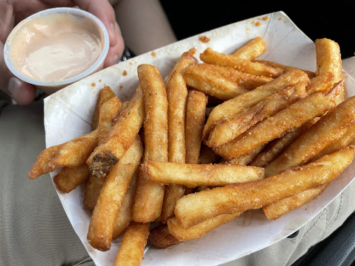 There’s very limited covered seating outside, we we just drive over to the grocery store and inhaled our food in our car. We were very surprised when we tried the fried. They are definitely doubled fried (at least) and have a delicious crunch on the outside while being soft on the inside. They are my most favorite fries hands down! The fry sauce was delicious too and next time I’ll ask for more of it.