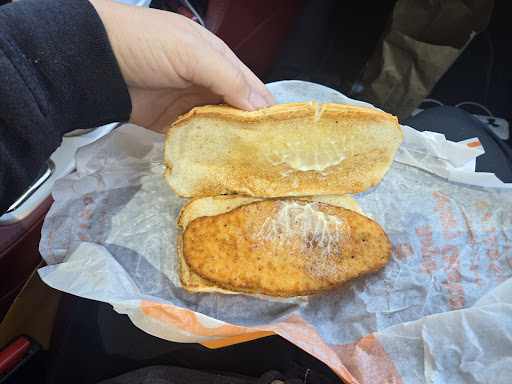 Read moreOn Monday, August 2 at 4:30 PM I went thru the drive thru. I ordered a chicken and fry, 2 of the new burgers with the garlic chips with a fry. The employee sounded as if he was coming off a high. Pulling up to the window, I noticed how sloppy and trashy things were. Now understand, they no longer seat people indoors. The only requirement is to cook and make sure the order is correct. Both were off the mark. If the new burger with garlic chips looks good, dont waste your time. I counted 8 small chips in the center of the bun and there's nothing crunchy about them. The fries were Luke warm and cold by the time I arrived home 8 mins later. Thanks but no thanks BURGER KING. The highest Mark's for good lunch, extremely clean, always friendly and always serve the best sub in town, JIMMY JOHNS is...
