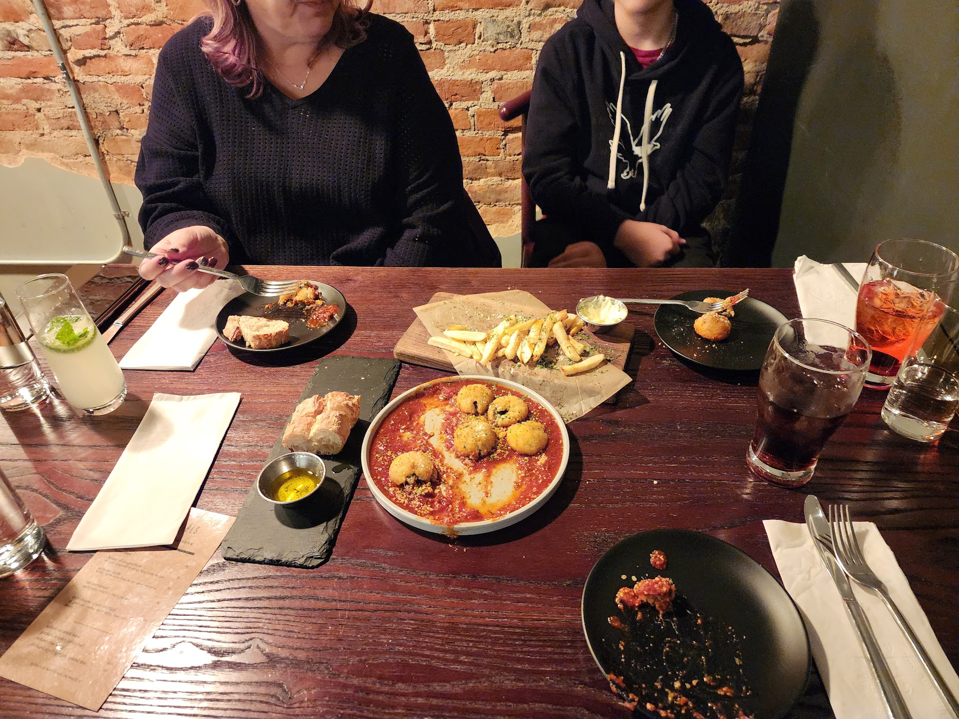 Read moreVery nice atmosphere! Service was pretty average. The Food was pretty much non-existent, even for small plates! Not many choices for the charcuterie board beyond goat cheese, which was what we went in for. Bread was just a dry loaf that came with a bland olive oil. No other garlic or spices in the olive oil dip. sicilian rice balls were alright, but not sure if they were frozen or made fresh, since they came out a little cold. Truffle fries didn't hold much flavor on them. Just parm?? Drinks i guess follow the same Small & miniature theme. The cocktail came out in basically a thin tube. Seemed to be less than 8oz for a premium price?!? Cocktail was very sour and not reslly drinkable unless you like to pucker. We wanted to try someplace new, but just weren't impressed unfortuneatly. It was just meh, and would not go back. More of a first date place. Just was no music or anything...