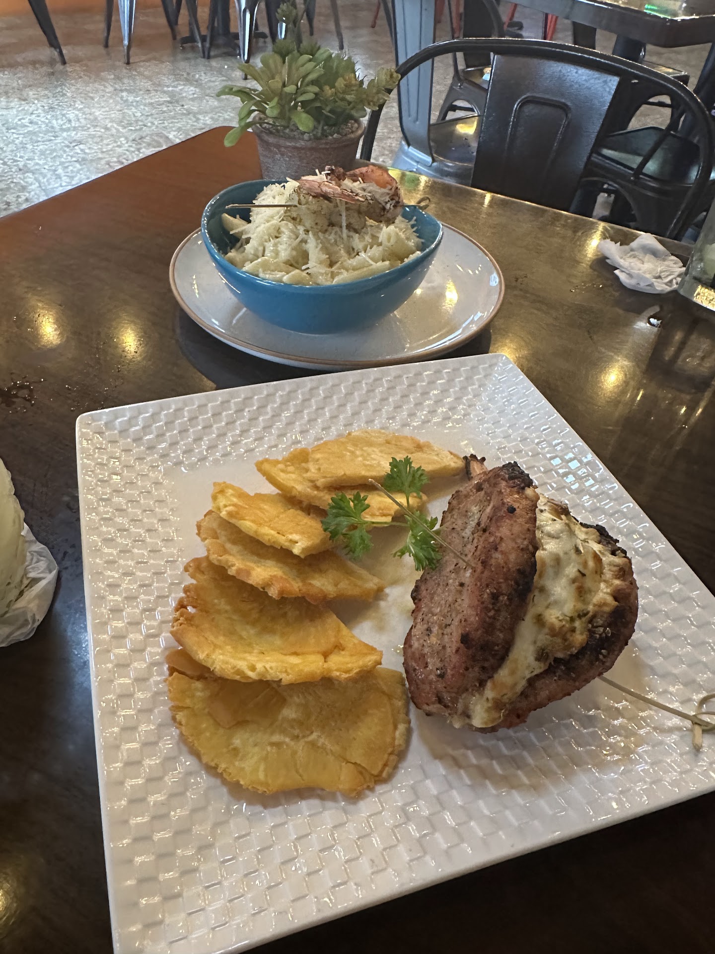 Read moreMala experiencia. El precio de la comida no es justificable para lo q ofrecen. Las pastas 15.95 para una pasta q no es hecha en casa ni su salsa tampoco es hecha en casa. Ademas su porcion es muy pequeña. Mofongo “relleno”. Se pidio con pollo, 15.95 y vino en un plato q no te profundidad para ser relleno y la cantidad de pollo fue el de una pechuga muy pequeña. Su sabor, nada especial. Luego de nuestro grupo de 4 ordenar llegaron dos mesas. Dichas mesas fueron servidas antes que la nuestra. Una hora u diez minutos por nuestra comida. El recibo no nos lo podiamos llevar, esperamos muchisimo por una copia. Clarifico, he estado en muchos restaurantes en PR, Europa, Canada, EU, el Caribe y Venezuela. No lo digo para engrandecerme, solo para un marco de referencia. No recomiendo este sitio, pintura y capota....muy bonito pero la comida, para nada. Maybe unos drinks...