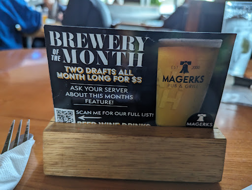 Read moreStopped in on our drive from OH to NJ. We started to regret choosing Magerks within the first 20 minutes. We were sat on the outdoor patio directly under the massive heat lamps. The table was so hot we couldn't rest our hands or arms even for a second without burning. Spent the last 30 minutes of our meal fanning myself with the happy hour menu to stop from overheating. If it's negative temps outside and you're blasting those, please don't seat people directly under heat lamps! Since we're driving to NJ and still have 2 hours, we aren't drinking. Waitress decided since we didn't order alcohol, we weren't really worth her service. Only came over to hand us food and the checks. Always walked right next to our table to get to her "favorite table" who happened to be ordering at least 9 drinks (I counted the glassware she left on their table) and then walk back to avoid us. When she finally asked us if we were okay (only after the app), she couldn't even be bothered to make eye contact. Just the customer service voice and smile. But she was great with the other table because they ordered alcohol! Got the fried pickle app - husband found 2 hairs fried into the pickles. I stopped eating them after that. Waitress was so off putting I didn't dare complain - he just got rid of them and worked around them. Steak dinner was pretty good. Husband had the burger and said it was okay. Annoying they don't do substitutions for an upcharge. You have to order a whole side and they still give you the side you don't really want. He ordered the side of sweet potato fries because he didn't want the chips. They're just cheap frozen sweet potato fries with no flavor, no nothing. Not worth an extra $7.