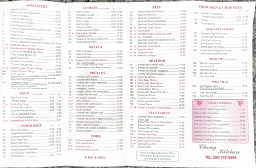Read moreWe order from here all the time with no issues..We ordered our usual on Thanksgiving - PuPu for 2 beef lo mein, egg foo yung and to our disappointment it was the worst meal ever the chicken fingers were over cooked & hard as a rock not even edible...the beef teriyaki was more like beef jerky...the egg foo yung was burnt ...the beef lo mein had no beef...the boneless ribs were little charred pieces of pork and to top it all off everything was cold...sorry to say Cheng Kitchen you have lost...