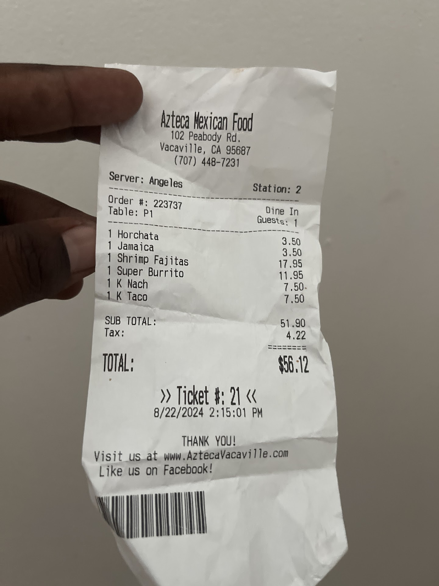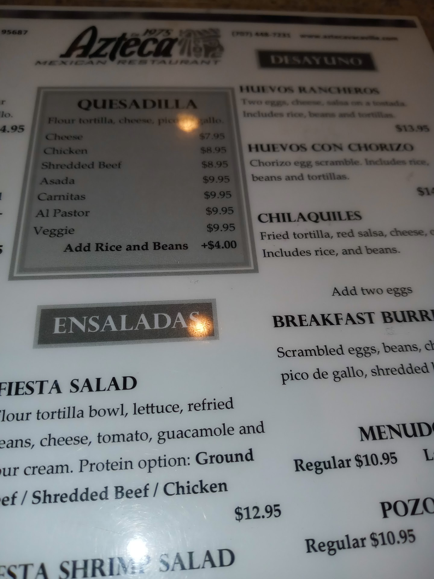 Read moreMy family moved to Vacaville in 1981. My dad always used to like to try different places to eat. We certainly had our favorites in San Bernardino, and we needed to find new favorites. El Azteca is in a (formerly very busy) shopping center on Peabody Rd. It's kinda tucked away in the back; a hidden gem totally worth finding! There is a new sign right up front listing all the places in that center now. The restaurant has recently done some upgrades, with the booths. (Nice!) I remember that if we had family visiting from out of town, we definitely hit up El Azteca. The food is delicious and very reasonably priced. They have daily specials, lunch buffets, and I've tried almost everything on the menu. My goto is #14 (2 enchiladas, rice and beans). My very favorite is the camarones del ajo. I've introduced many of my friends to my family favorite spot, and we've gone back many times. The waitresses are always super friendly, and check on you to see if you need beverage refills, more chips, more salsa, etc. I highly...
