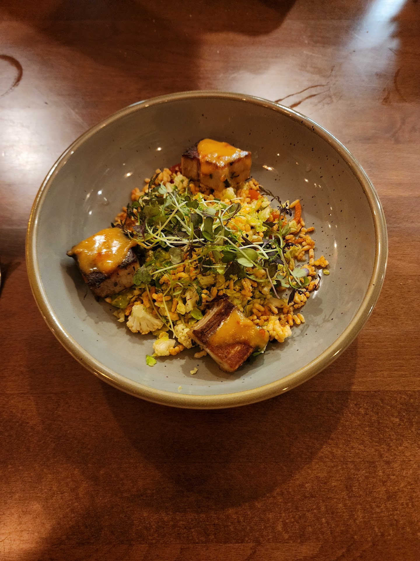 The prices are eminently reasonable for the quality of hometown cuisine; we found the service and staff most commendable. Our table was cleared as entrees were happily consumed; we were not rushed and provided take-out containers for what we hadn't finished. We know we will return as the innovative design of this new venue is so pleasant, open, roomy, and welcoming. My only tiny demerit is the fact that there is but one unisex bathroom in an adjacent hallway with patrons lined up to wait, which was a tad incongruous, slightly unpleasant -- I skipped that experience. Perhaps in future maybe related upgraded accommodations? Overall, this was five-star afternoon dining in downtown Vacaville, a welcome respite from the heat enhanced by highly-motivated energetic courteous attentive servers, along with a fine bartender, an amazing team of chefs and their...