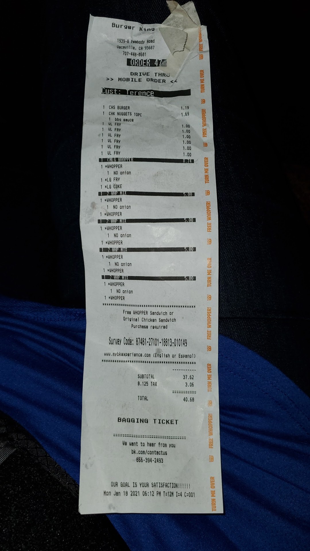 I recently had a regrettable dining experience at Burger King. As a loyal customer, I expected better, but unfortunately, my visit left me feeling disappointed and frustrated. I feel compelled to share my experience with others, hoping that the management will take notice and address these concerning issues. Upon receiving my order, I was eagerly anticipating enjoying my favorite dish, but to my dismay, I discovered that the fries were moldy! The sight of mold on my food was both nauseating and alarming. It's unacceptable for a restaurant to serve such subpar quality food to its customers. I immediately threw them in the trash. However, the disappointment didn't end there. As I settled down to eat, I realized that some of the food items I had ordered were missing entirely. It was incredibly frustrating to pay for a full meal and receive an incomplete and unsatisfactory order instead. The lack of attention to food quality and missing items made me question the overall hygiene and management standards at burger king. As a customer, I expect my order experience to be enjoyable, safe, and free from any health hazards.