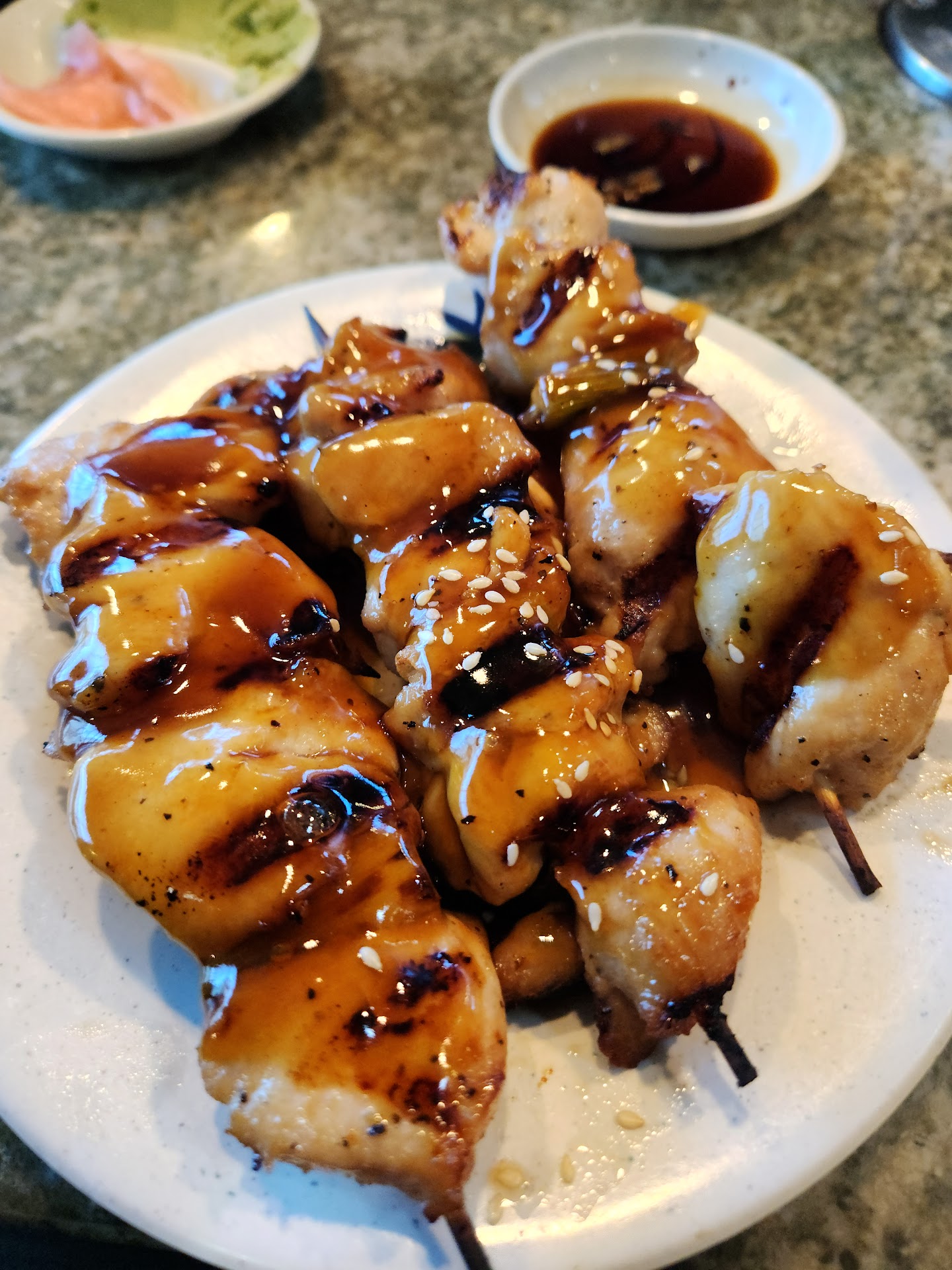 We had driven by this place on the freeway for years and we thought we'd finally try it. I had always heard how wonderful Japanese steak is so my expectations were quite high (perhaps too high). I'm very glad that we went during happy hour when they have some good specials (Sun-Thurs from 4pm - 6pm) because it wouldn't have been worth it to pay the full dinner price. We had never tried food grilled Teppanyaki style in front of us; so, I am glad we experienced that. And it was fun to watch the reaction of the boy seated next to us to the open flames the chef had flare up a couple of times.