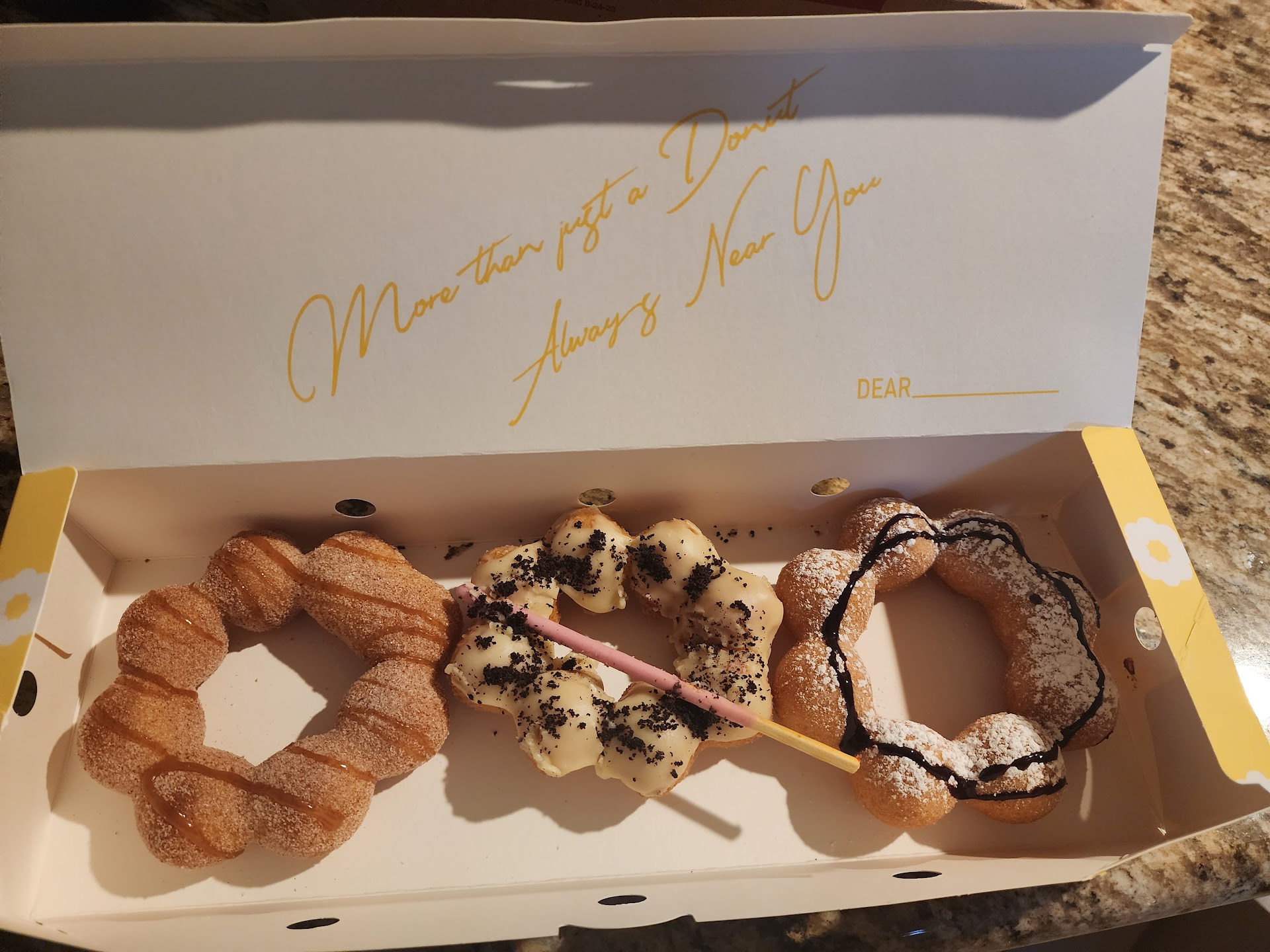 Food: Boba was very chewy and undercooked, drinks weren't cold enough, and brown sugar Boba was absurdly sweeter than it needed to be. Donuts have wheat in them-- so they're basically normal donuts that are a bit chewier and shaped differently. Marketing them as mochi donuts feels dishonest. While there is mochi in them, the flour is not just mochi. If you can eat wheat and you want a donut, try them, but they're basically a donut in a different shape. And you get less than a normal donut, so for $3.xx a donut you're getting a worse deal than going to...