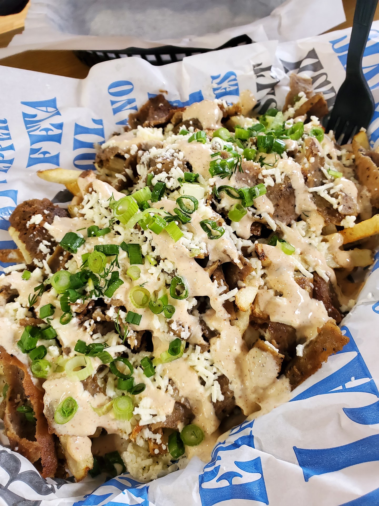 Read moreOur first time eating here. Staff was very friendly and food came out quickly. We had their version of a loaded fry, garlicky fries with feta, lamb & beef as the choice of protein, spicy sauce, scallions. The fries were really delicious. I added a side of tzatziki because I love cucumbers, it has a strong touch of dill, which I didn't love but it was still yummy. My wife got the Gyro pita wrap and loved it. Said that is was soft and chewy and the meat was warm and flavorful. We will go back and may try other choices. The only negative was that there was a section of several tables where the benches were wet and tables were filthy and the floor had a spill that needed to be mopped. So we had to sit by the door, it was the only clean table and every time the door opened we felt the freezing cold wind. I'm sure it's probably just due to being so busy. Would...