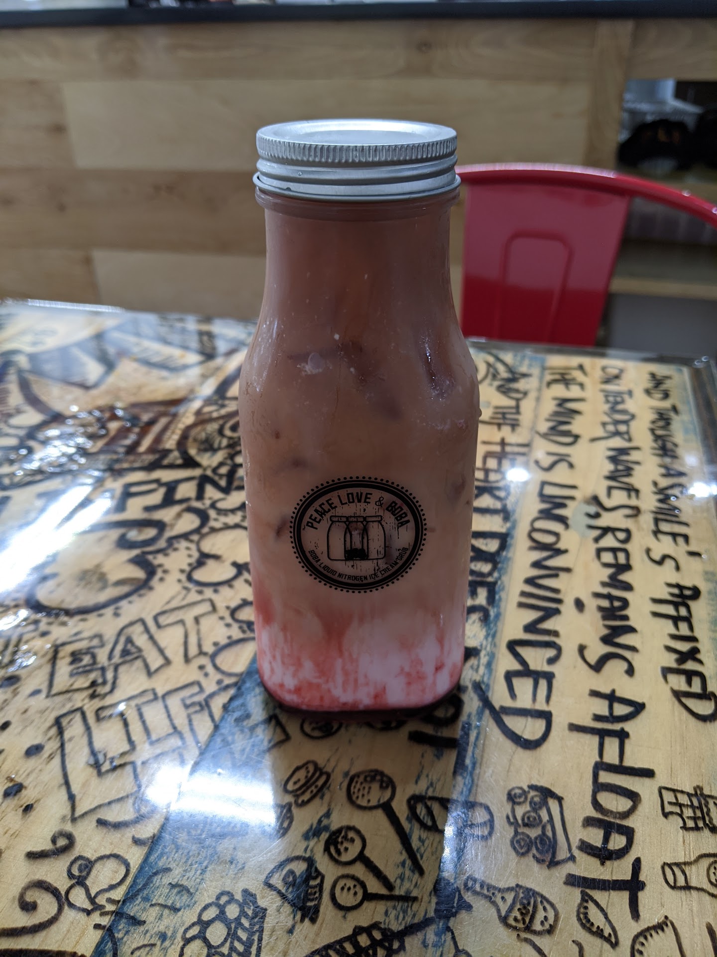 Princess, Jasmine Strawberry and Lavender (When I tried it they were out of Jasmine so I had mine with black tea which in my opinion I prefer over Jasmine) Now this tea I tried to get out of my comfort zone so with some doubt as most strawberry drinks taste too sour or too fake. This Milk tea did the exact opposite. This Princess milk tea blew my mind from my expectations and was not too sweet and was the right amount of strawberry in it. Highly recommend for anyone who likes strawberry with more depth and notes of a accenting flavors (Picture is of Princess Milk Tea with one of their purchasable reusable containers that give you a 10% your drink Everytime you bring it in for only $5)