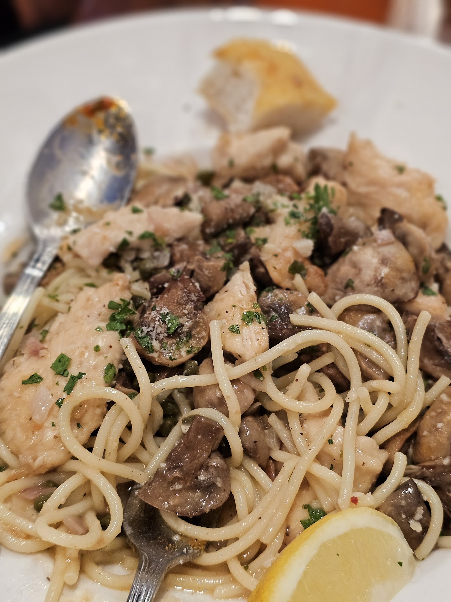 Updated visit 5/11/2024 Server: Antonio ( I think it is his name) okay server. Table for 2- we ordered 2 Chicken Piccata Dinners. The Chicken Piccata was good ( see photo). I would have liked more cappers. We also ordered an appetizer, the meatballs (see photo). Now for the dinner to-go Shrimp Scampi, which was a terrible choice because it would have gone back to the kitchen. The shrimp still had its poop sac attached, which was so disgusting and disappointing, and I ordered extra shrimp for the meal for my son at home. My son was so disappointed. We can not recommend the shrimp after seeing the poop.
