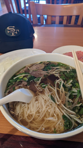 Tough to say. The people that works there are nice and friendly. But in my opinion, ratings should be about food foremost then service second to it. Stopped by on the way to sac, and was trying to miss the traffic on 80. Went in around 600pm. Ordered the brisket with added meatball. Food came out fairly quick. It had chicken with meatball in it. The lady behind the counter noticed something wrong and came to my table, possibly due to the fact I was stirring the soup aimlessly. She took the bowl without saying anything and asked the young girl what I had ordered. At that point she said she think it was #8 with meatball. I didnt remembered so I let it be. The bowl came out and it had meatball with rare slices of beef. Lol. At that point I didnt really care and just ate it. If it was good I could care less what they had brought me. But boy the broth was so bland and watery. That in turn made the rare steak bland as well, due to the soaking up of broth while the steak cook. The meatball tasted very spongy, almost like it was taken from frozen to edible within 5 minutes. I had to salvage the meal by adding hoisin sauce to the broth and made it somewhat edible. All in all I should've stayed in traffic and ate pho in sac. One good thing that came out from the meal was the avocado shake. It was ok....