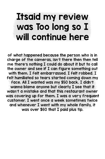 On September 30, 2025, I went to this restaurant to have lunch with my one-year-old. I ordered, sat down, and ate when I finished eating. I decided to go buy dessert. I made my order cashier(an older lady I would say in her late 50âs, medium-dark complexion, with a piercing on her nose) gave me my total and I handed her a $50 bill. She then holds my $50 bill and asks me if I have a smaller bill. I then reply no so we stare at each other and smile, to make it easier for them I decide to pay with my card. (Even though thereâs a 50 Cent fee if you use card so my total went up $.50 )I use Apple Pay mind you she is still holding my $50. She asked me if I wanted a receipt. I say no then she tells me that my order will be out shortly I grab my one-year-old and sit down at my table. She takes the dessert to me. I eat it. I clean around my table. I clean up the floor and as Iâm walking out, someone holds the door for me in my mind I remembered never receiving my $50 but I didnât want to accuse anyone before I was sure that's not who I am so I go to my car count my money, and realize that in fact I am missing $50. Check my pockets check my purse again take a deep breath hoping she tells me yes you forgot it here. I go in and I ask her and she tells me âAre you sure you didnât drop it?â âdid you check everythingâ âyou had so many things on your handsâ âcheck againâ she then goes to the table where I was sitting and says itâs not over there. I tell her yes Iâm sure I already double checked in my head still thinking maybe she did give it to me and I forgot and I dropped it so I asked her kindly. Do you think you can check the cameras for me so I can see that I grab the money she then calls a different cashier a tall on the heavy-set side, light-skinned girl with thick eyebrows and she tells me âHold on let me call my manager so they can check the cameras.â I say OK, thank you. I stand there and they tell me Go ahead and sit down so you donât have to stand here I go and I sit down. I wait 30 minutes right next to the register after 30 minutes. I see she checks her phone and she whispers she didnât take her money then they look at each other and start looking everywhere for it and âshe asks her well then where is it?â and the cashier who took the $50 bill says âI donât knowâ they start to act like theyâre looking around. I went up there and I asked them whatâs gonna happen. The tall heavy one tells me that âthe camera shows that none of us took itâ and I then respond. OK then who took it she says I donât know and so I asked her âDid I take it?â She stares blankly at me so then I smile and I ask her If I didnât take it can I have my money back? She then tells me to hold on. âI need to see what my managerâs gonna say.â I wait another 30 minutes and at this point, theyâre just acting like nothing happened, but they are very quiet. Both of them theyâre whispering to each other. The chefs are whispering with each other, and the woman continues to blame me for the situation. I then understand whatâs going on. I understand that they know who took it and they are covering up for that person I go up to them and tell them what is gonna happen and with a very bad attitude, she tells me âIâm gonna count the money and they register and if itâs not here, weâll see.âshe counts the money and she tells me thereâs $140 in there so they lied to me. They did have money to give me back my change. I then tell her so whatâs gonna happen and she tells me well at this point weâre gonna have to call the police to open an investigation and I tell her but what comes up in the camera and they look at each other and then they look down and ignore me and I tell her Iâm going to call the police she says with very bad Attitude. âGo aheadâ I called the nonemergency line and I told them whatâs happening and they told me that they are going to send an officer my way. I waited for the officers for like about an hour they got there. I tell them whatâs going on they go in and talk to them and when they come out, they tell me that they do not want to...
