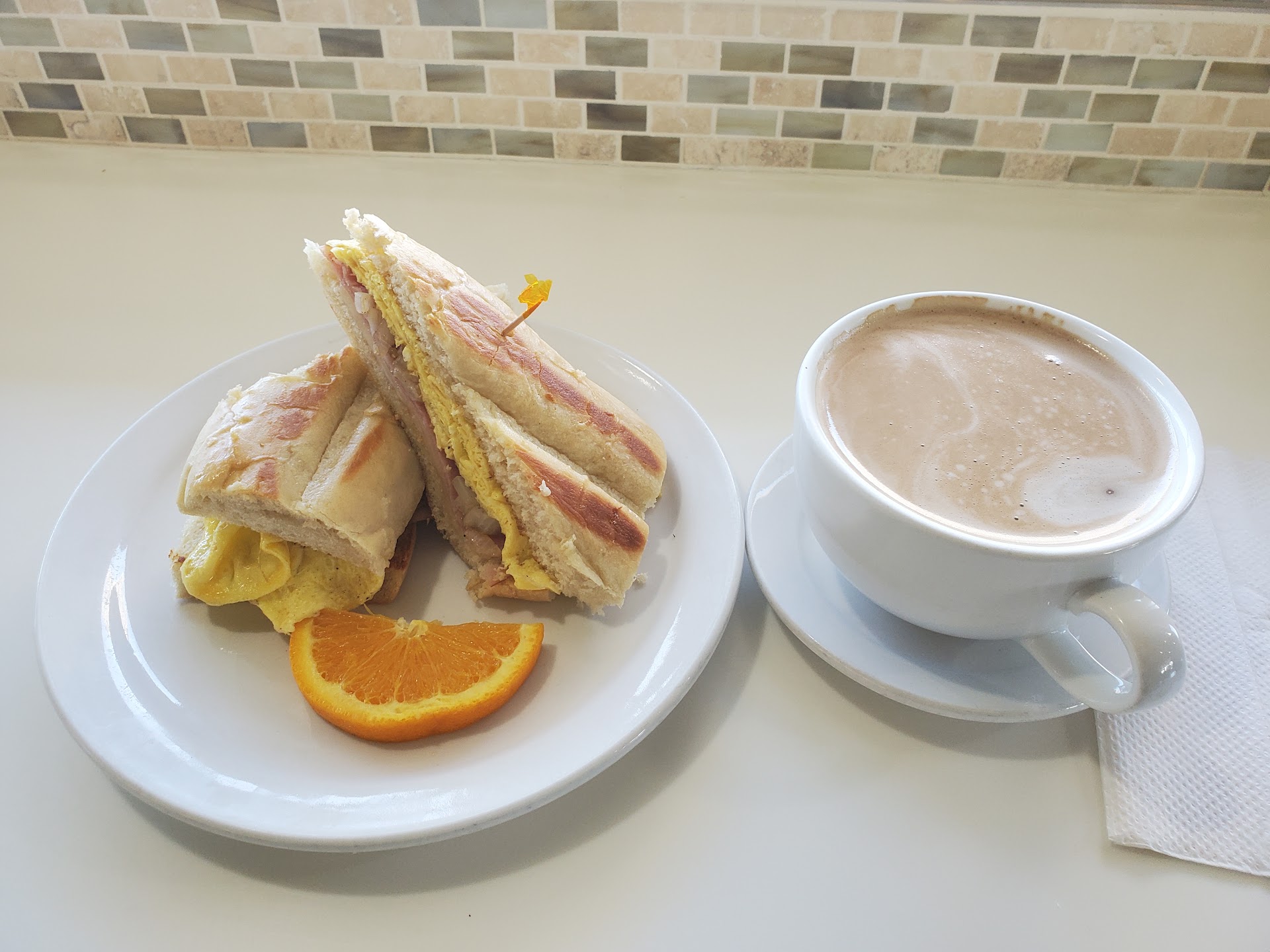 Read moreWhat the table ordered: Coffee (Cafe con Leche, Cafe Mocha Dark Chocolate) Tostones Croquettas Cuban Club Sandwich w Fries Medianoche w/ Black Beans