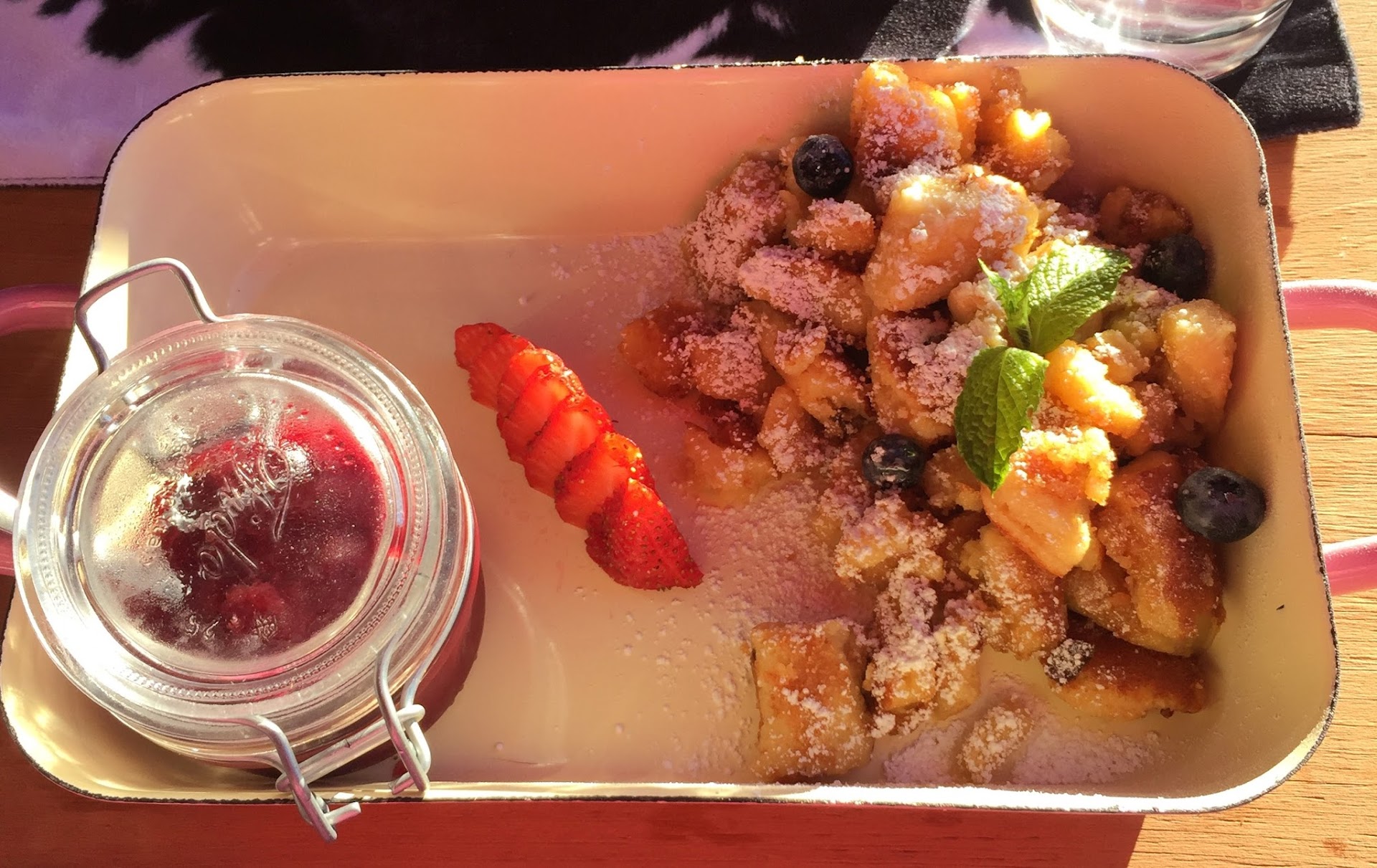 For our main courses, my partner had the Lumberjack Steak, and I had the short ribs. Both were incredible; we didn't even need knives to cut our respective meats. The portions were generous, and it was definitely some of the best food i've ever eaten. For dessert, we took home the Kaiserschmarrn, which were similar to fluffy beignets with fruit compote. These would likely have been better (and warm) if we ate them in the restaurant, but they were still delicious when we got home.