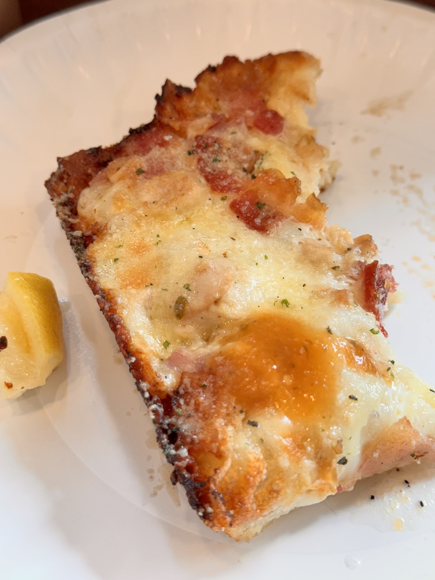 The food here really is worth noting. The Caesar salad and pizza tots were incredible, especially if eaten together. The wings were good quality meat The pizza itself had good flavor, but the edges were more burnt than I prefer, even for this style.