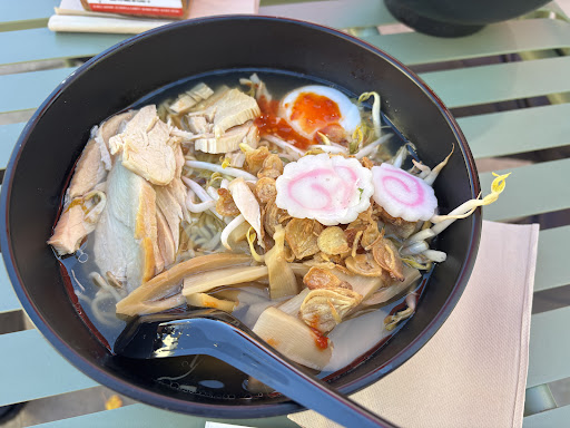 As a vegan, I got the spicy mushroom ramen, without egg and the noodles subbed for rice noodles, which was very good and filling. This place probably has the best value food from the Vail area. There were a lot more good vegan options at the mediterranean bar, I would highly recommend this place for vegans and vegetarians skiing.