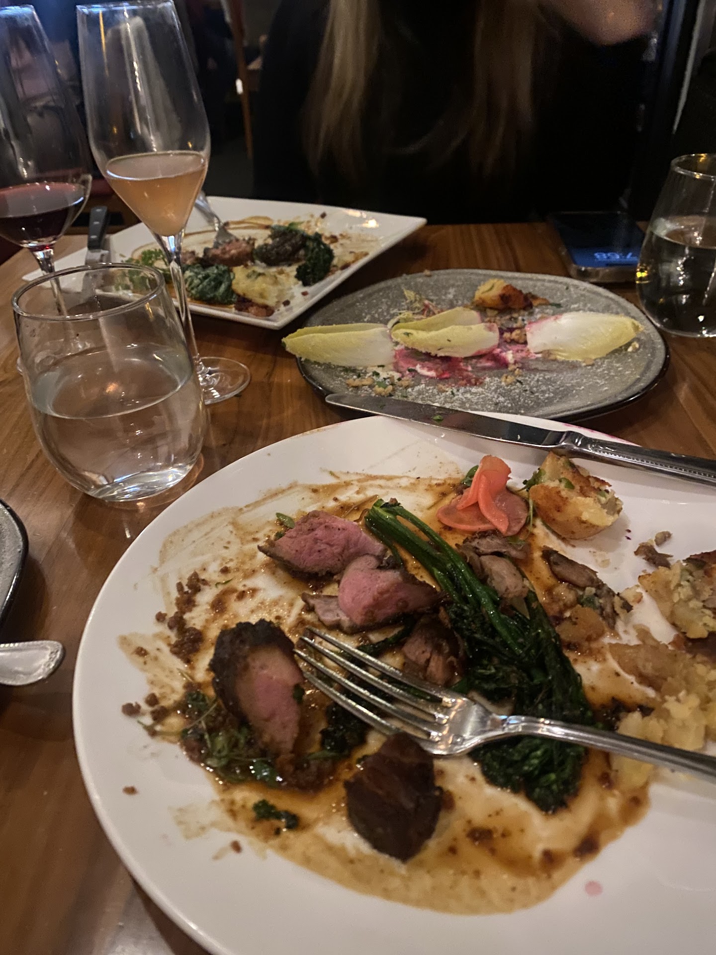 Read moreWent for my birthday. It started out well, staff was attentive and friendly. My friend had asked upon arrival for a small celebratory dessert to be brought out at the end to surprise me. Things started going downhill once the food arrived. First, our appetizer was incorrect, but no efforts were made to replace it. We got what we got apparently. We had ordered the shrimp cocktail and ended up with the sashimi. That being said it was the best part of the meal taste wise for me . The food was brought out so quickly we didn’t have time to finish, before our salads were served along WITH our entrees. Instead of spacing the timing of the cocktails, appetizers, salads and entrees everything just came out on top of each other. Also the entrees just came out so fast! Was pre prepared? Just waiting under hot lamps till someone chose ordered that item? Bc that’s exactly what I had thought. How did they have time to cook that, highly suspect. We were definitely feeling rushed. The food was a straight mid. Not terrible, but not knock my socks off either. I got the duck which is my favorite treat yourself meal. It was cooked well but the flavor just wasn’t really there and it wasn’t properly butchered as there was quite a bit of fat still attached. The potatoes were very very dry, overcooked (hot lamps?). Again, we were feeling rushed although there were plenty of tables available and open for new patrons. Our waiter kept coming to take our food before my friend was done with her meal. Several times. I indicated that my plates could be taken, but they weren’t. We we’re hurriedly given dessert menus, but at that point we just felt that we’re done. I didn’t want to linger as the whole thing was just felt so rushed and we couldn’t just sit and chat and enjoy the meal. We were hoping for a high end dining experience that we could take our time enjoying each other and the meal. That is not what happened. My celebration dessert was never brought out and that disappointed my friend whom had...