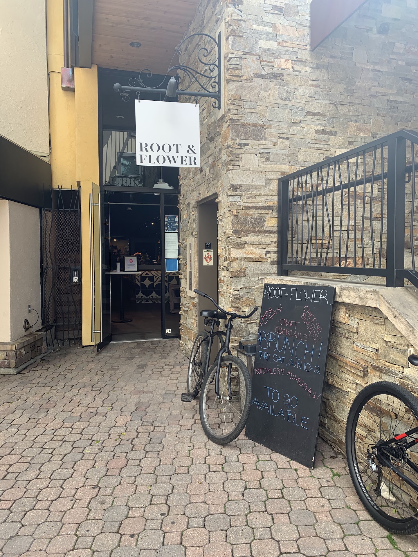 Root & Flower is a cute small spot in Vail Village with a full wine bar at night, and coffee and a few breakfast items during the day. They serve Two Arrows coffee and lots of espresso drinks.