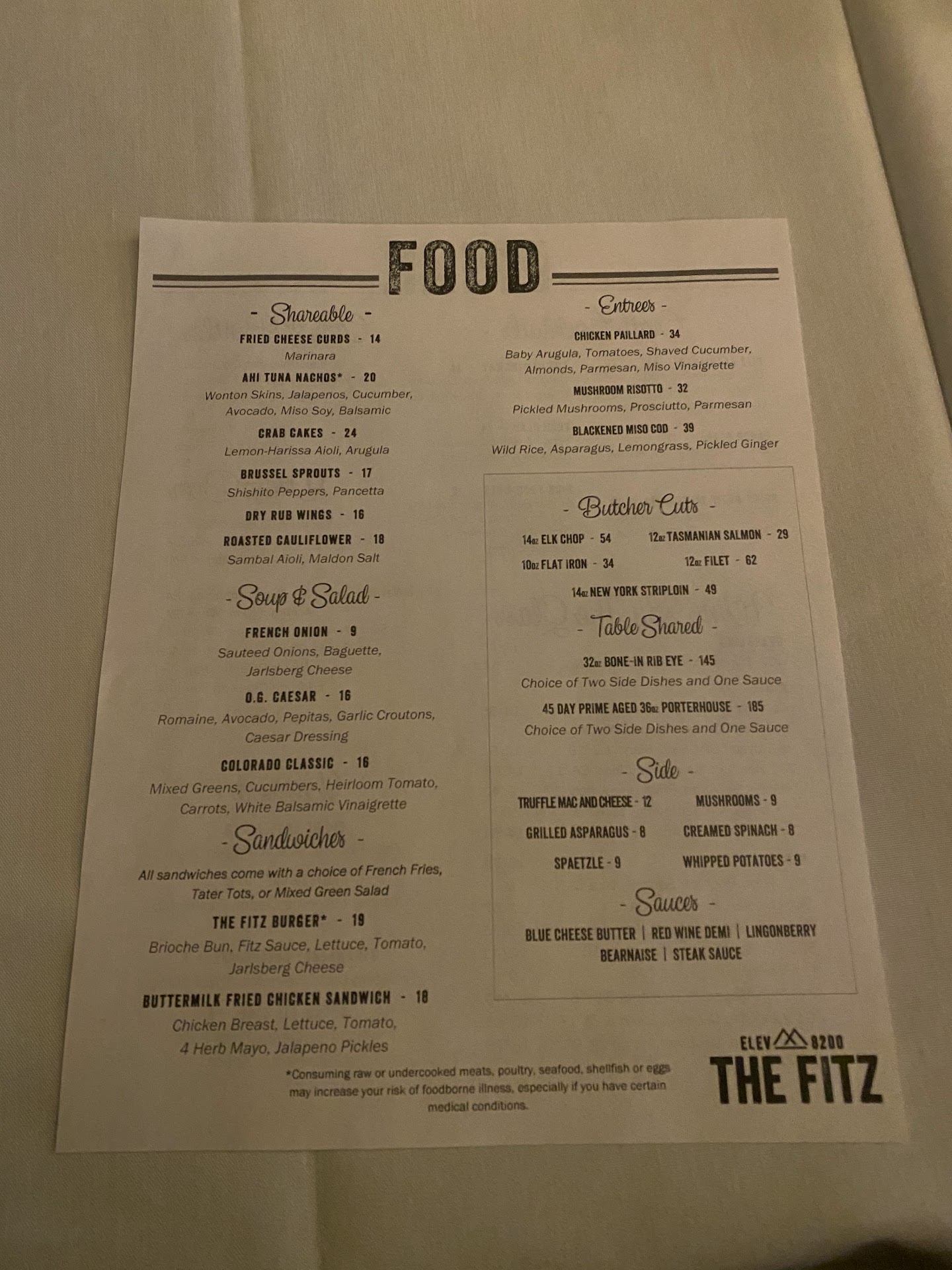 Read moreI hate writing bad reviews but considering this is a touristy area, people should know this isn't representative of Colorado cuisine. I'll start with a couple positives. If you just want a drink or two, this might be a good spot. The French fries, tots and pretzel were good, staple bar snacks. That being said, the prices are pretty unreasonable for them as well. The entrees are flavorless, frozen, dry foods dressed up pretending to be gourmet. I understand why they had to take some things off the menu, it seems they bit off more than they could chew with complex dishes and complicated ingredients. Maybe if they focused on what they do well, save the money used on ingredients that aren't working for them and calm the drink prices down they...