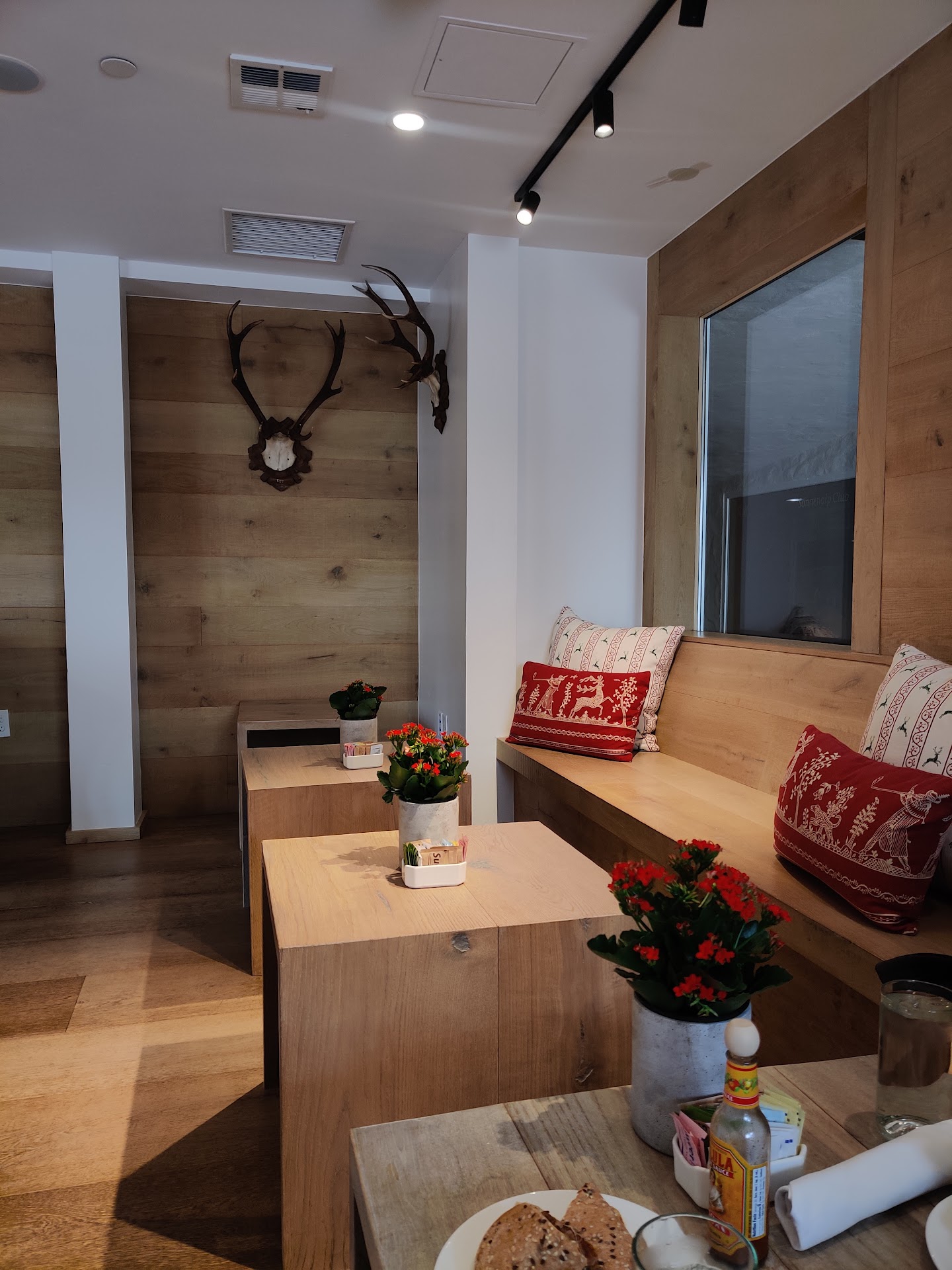 Atmosphere: small, but not dark. Really liked the window seat we got, the wood brightens up the space and it's very comfortable and cozy with the cushions.