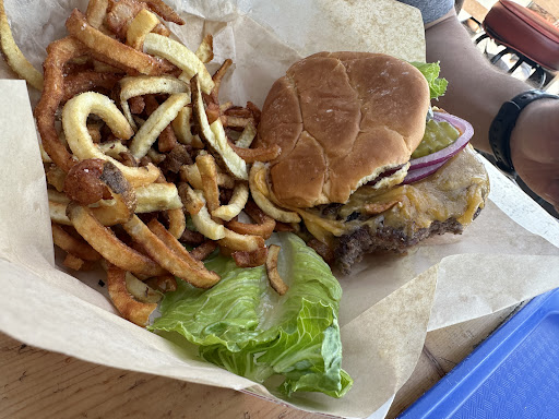 Read moreOrdered the smoked salmon chowder ($13), basket of âcurlyâ fries ($7) and the Bonanza Burger w/ side of fries ($21). The chowder: super thick, too much going on, strong dill, cream and clam flavor, can barely taste the salmon. Still edible to me, but husband it was âhorribleâ. Came with some toasted white bread, no flavour but something to use to dip (if it was sourdough I couldnât tell)