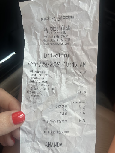Read moreRead moreIn order to post this review, I was forced to add a star this place isn't deserving of the one star I was forced to select. My husband and I were excited about our fist time visit to Huey Magoo's; however, we ended up being extremely disappointed. We waited 40 minutes for BAD food. People who arrived and ordered after us, received their food before we did. When I asked about the status of our food, the front counter female worker responded rudely, and later when I was supposedly speaking with "the manager" I received a similar attitude ~ no smiles from these workers!!! They were defensive and unapologetic. When the food was finally delivered, we were met with small chicken tenders, boring cole slaw and stale room temperature french fries. The website says thick hand-cut pickles my sandwich had 4 small pickle butts (ends) not even edible. The manager said, "they just pull them out of the jar" she had no interest in what the website claims. We will never stop at a Huey Magoo Chicken restaurant again not a good experience. Our $26 meal was barely worth $0.26. The owner of this franchise...
