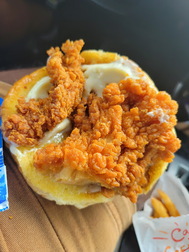 The food is decent (for what it is), but the service at this location (#13847) is TERRIBLE. I'm not going to give a negative review of a place for having one bad day either. Today is the third time I've visited this location and every time the wait has been exceptionally long. But, this visit was by far the worst (and the reason I won't be a patron at this location going forward). I arrived and there were two cars in front of me at the ordering screen. We waited about 7 (+/-) mins to pull up, and then when it was our turn to order after the automated message said to order the employee asked us to wait to order. I said, "No problem, take your time." Boy did they take that to heart. After about 10 mins, I asked my passenger to step out and see if anyone was in the line in front of us (maybe they forgot we were there). They said there was just one car in front of us at the window. I waited another minute and said, "Hello?". They replied, "Sorry for the wait, go ahead with your order." (Glad I said something). I asked for one regular chicken sandwich and one spicy. They told me it would be about a 6 min wait for the sandwiches since they just had a large sandwich order (I mean, it's Popeyes, I'm not surprised they have lots of chicken sandwich orders), and asked if it was okay. I said sure and continued with my order of one fry. They told me to pull up to the window. By the time I pulled up no one was in the line, it was empty. I paid for the order and they asked me to pull up past the building, make a left, and park in the road (facing on coming traffic) in front of the building and they would walk it out to me. Okay. My receipt time was 12:25pm. After about 12 mins (twice the time they told me the additional wait would be), I went inside for a refund. They said the sandwiches were done and asked if I wanted them (Yeah, I wanted them a half an hour ago when I pulled into the drive thru). I said, no thank you just the refund. The person who had taken my order, and payment, was apparently the manager on shift (was told their name was KT). They didn't acknowledge me, just spoke to the employee behind the counter who I had asked for the refund. I said, excuse me do you need my card, and the manager turned around obviously annoyed and said NO. I watched her finish at her register, a refund receipt printed, she left it there and handed the other employee my original receipt. Still not addressing me, asking why I wanted a refund, or making any effort to correct the issue. I then asked the employee (who was very polite) if I could please have my refund receipt. She said she had to get it from "her" (the manager), and after asking her for it (already printed and just sitting there by the drive thru register) had to wait for her to walk over and get it. The manager handed it to the employee, who then turned around to hand it the me. The refund receipt timestamp was 12:40pm, and I finally left there around 12:45pm. Take away from this visit, this location is not interested in customer service or profitability for it's owner. Management needs training in time management and customer service. Again, I didn't post a review the first two times that the wait was a "little extra", but this seems to just be a consistent issue at this location. Left this Popeyes at 12:45pm and drove to the location on Bemiss in 9 mins. Had my order in hand (after a brief wait too) and was driving away by 1:03pm.