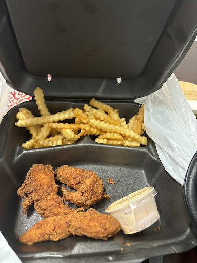 Read morePleeeasantly surprised by this place. The outside was cute-ish, inside not so cute, and the food was dang good. The inside of the restaurant was somewhat unclean when we went, and didn't have much decoration. The workers, while mostly friendly, seemed to be cool with talking to their coworkers as they took our order which was slightly awkward lol. I honestly wasn't expecting much because everything seemed kind of plain I suppose, but once I tasted some of the fried chicken, I changed my mind haha. Their chicken tenders was delicious! Not super heavily breaded with a yummy flavor and dipping sauce (the sauce was kind of like Raising Cane's or Zaxby's type sauce), pretty good mac n cheese, not to mention the cookie we got for dessert was massive and deliciousđ They apparantly only serve the biscuits and stuff in the morning (guess I didn't see the sign? Idk haha). The food was quite yummy, and would stop there again while passing...