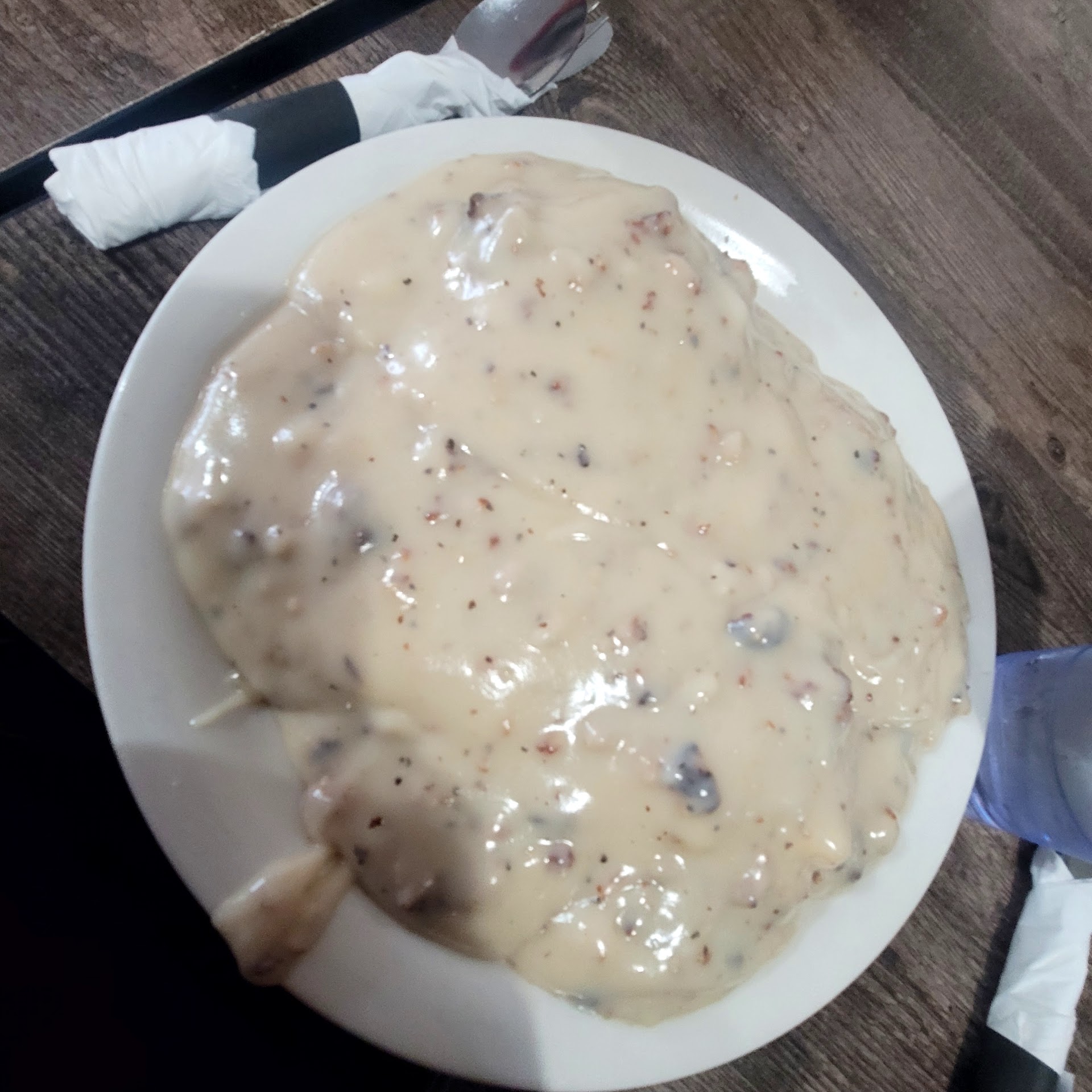 Hearty country breakfast: They did not skimp on the gravy with the biscuits and gravy. I'm happy I decided to go with sausage patties. It was heaven in every bite.