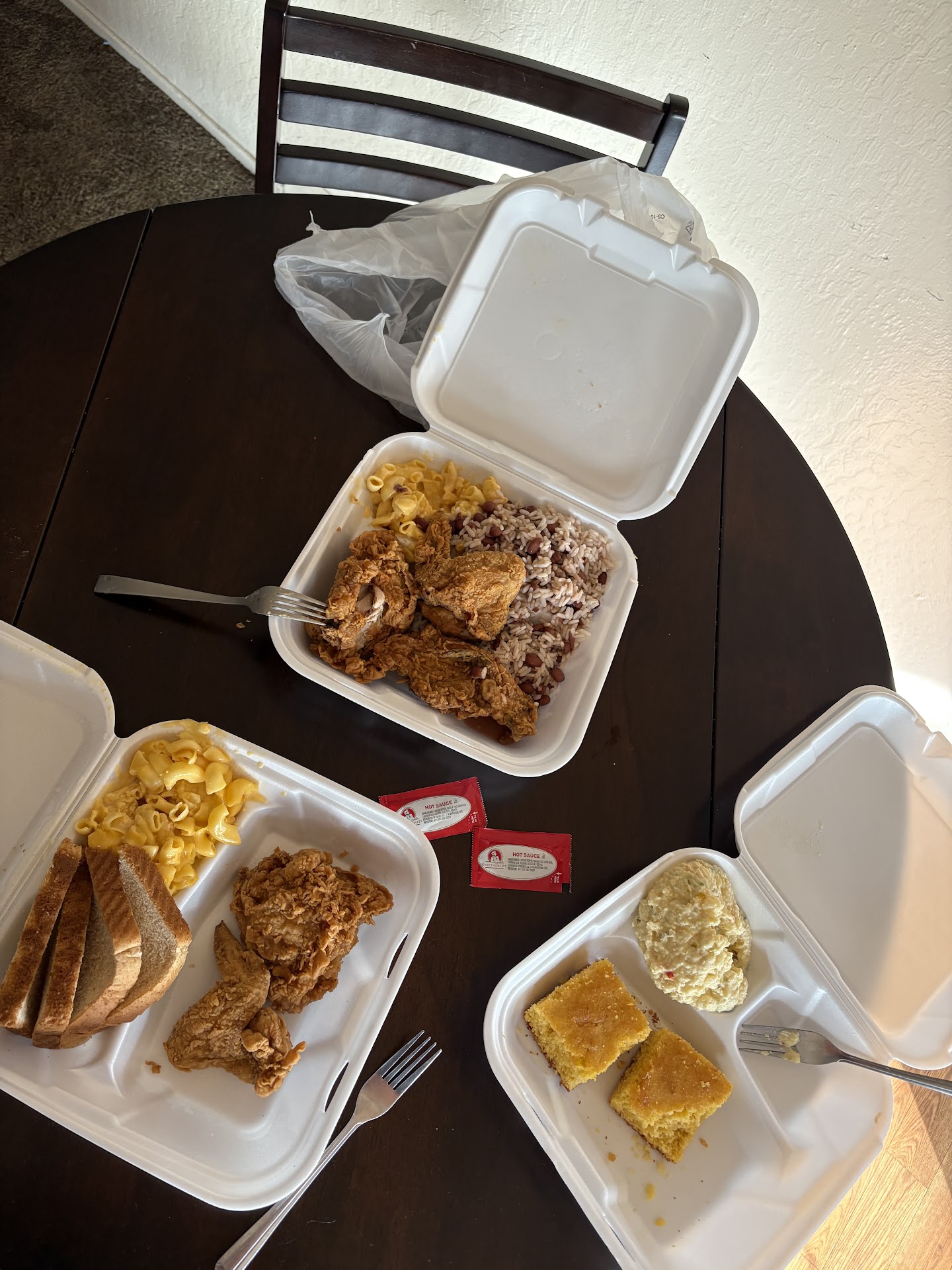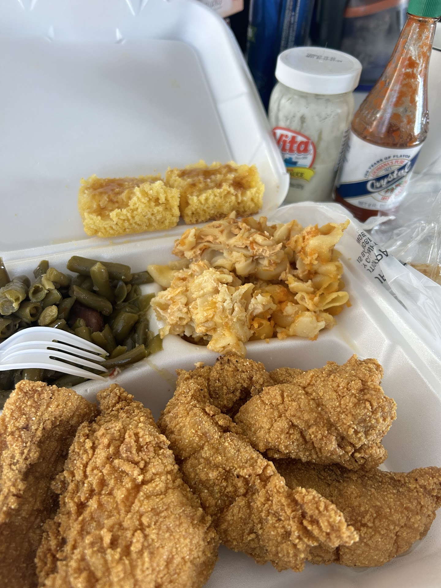 Read moreI've been here plenty of times before but it has been a few years since I've been and I'm in line ready to out in my Togo order and the young lady taking orders completely looked at me in my face and passed me up and took the couple behind me orders first when they came in after me...so I said so whose taking my orser...then she said oh what would u like to order....that was around 756pm... it's now 843pm...the entire time she would look my way and have a mug face....i will wait til i get my orders and say something....the food has always been good and never had issues with the service until today...irritated the hell outta me....so after letting the owner know she apologized which technically wasn't her fault, but then the girl got my orders wrong then had the nerve to have an attitude with me...regardless your in customer service boo, so she should have apologized instead of talking back and motioning her hand and I qoute "i ain't worried bout what your saying!" Come on little girl don't start with me pls...i grabbed my food off the counter (already paid of course) and left....she was rude off top when walking in there....on top of that they didn't even give me my cornbread...one star customer service is everything...i most likely wasn't...