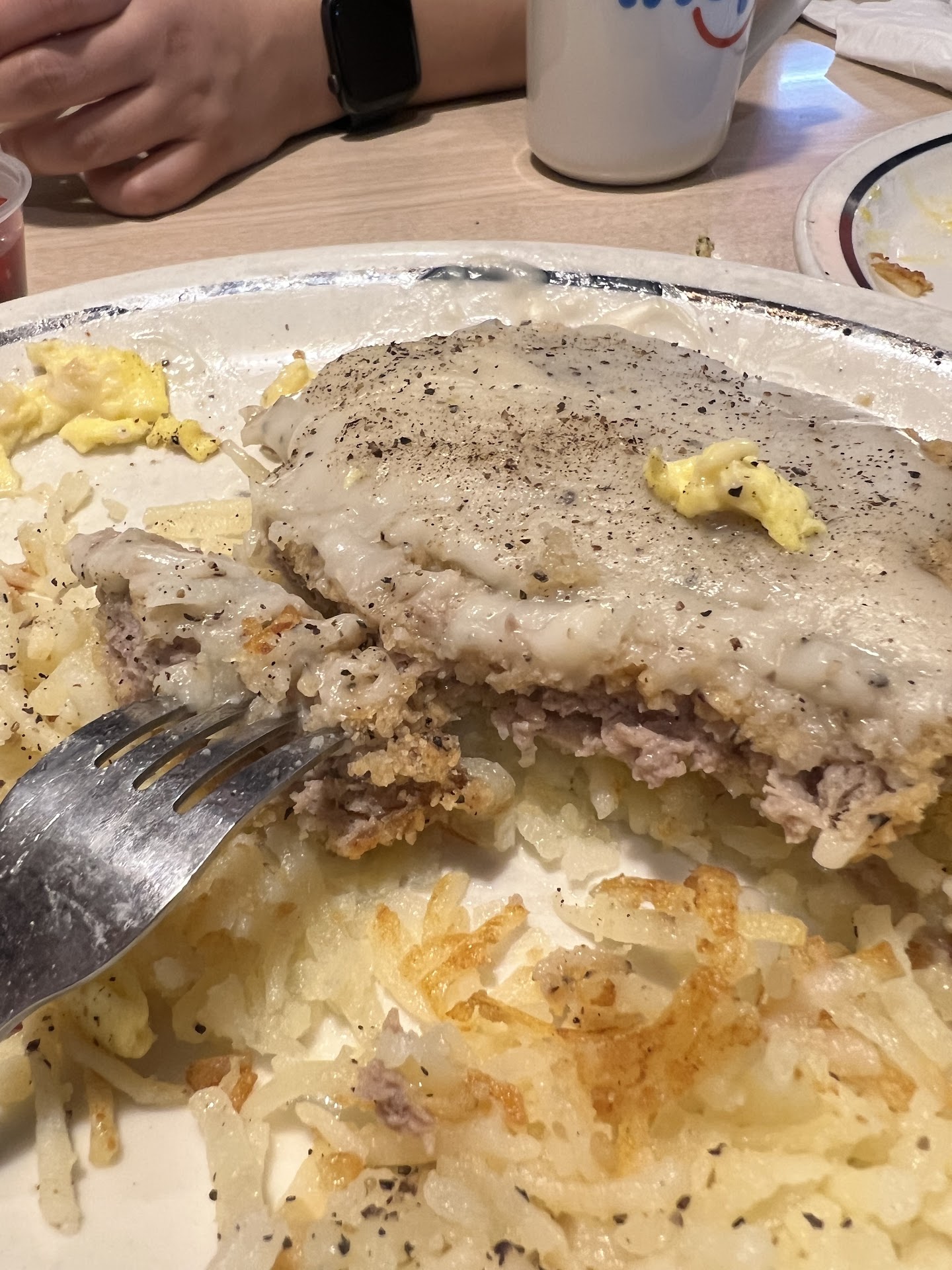 They let us down from the get go, starting with forgetting our coffee,⊠bringing it at the END of the meal instead of before! Secondly the Chicken fried steak was far beyond sub par, tasted raw and looked like itâs been sitting. Hasbrowns weâre also slightly soggy, when theyâre supposed to be crispy