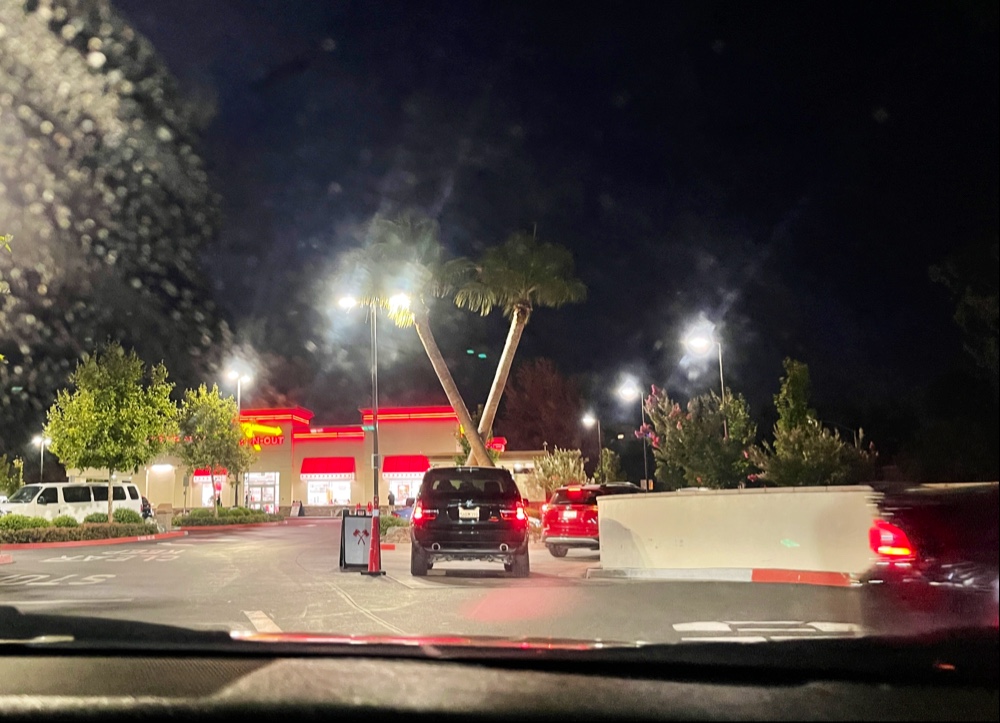 An employee was nice and swept up all the glass, and let us know it's pretty common. Assuming I ever go back, I will never trust leaving my vehicle unattended there again. If you watch general smash and grab videos for the area on YouTube, you'll see vehicles pull up, smash glass, grab an item, and rush off in a matter of seconds. The worthless dookie took a backpack (awesome red/black Mario backpack of high sentimental to me as a momento of a past vacation) containing some partially drank water bottles, 1 full water bottle, maybe 5 crushed empty water bottles, my kid's small sun hat, and a few snacks, plus a bottle opener (an item of high sentimental value since it was from 2020, weeks before the shutdown happened, and it was the last time I saw some of those friends ever, which was during some after work drinks and we all got one from a vendor giving them out... it looks like an axe). Maybe there were some $ valuable things I just don't remember being in there. But the cost to replace the window is insanely high. Probably going to file a police report just in case it's helpful of anything towards prosecution in the future (if they ever need a tally of victims of these people). Most expensive in n out trip ever.
