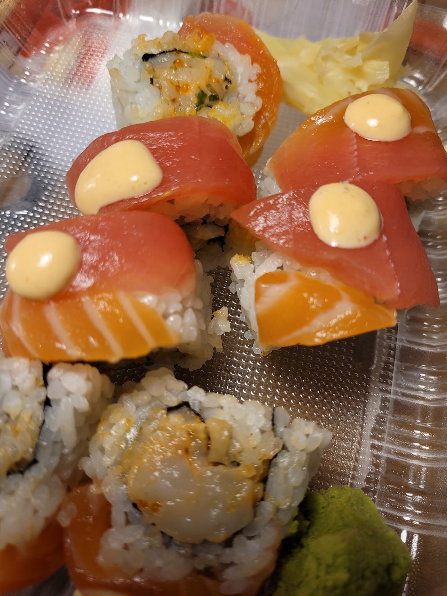 Have gotten take out and it was great! Traveled really well presentation and taste/quality of rolls hits the spot. Tonight I was craving sushi after my massage so I went in and asked for a table. I liked the vibe inside, they have some tv's with sports playing and pics of menu items, the ladies/staff were wonderful, Francesa was my server, she seemed a bit caught up but I understand and appreciate her forsure, other ladies were checking in to see if everything was okay as well, asked if I needed anything else, served more water and didn't feel rushed. Food came out really fast. I enjoyed it. Cool spot, authentic, quality, makes you wanna come back for more, definitely feels like a new local favorite of mine. Cool dude at the bar seats was spreading good vibes had some laughs. I didn't know what to expect but I did like the vibe. It's not as busy on Sundays some locals were saying that's why I guess the reviews talking about bad service are understandable, I can see it getting pretty busy and chaotic for the servers on those busy days/nights but still give them a chance. I'll try to stay away from the busy times for now. Thanks ladies! love me some sushi ;) Have tried about 5 different rolls here they're really good just feel some could use bigger pieces of fish maybe? I think it varies here but I'll still give you...