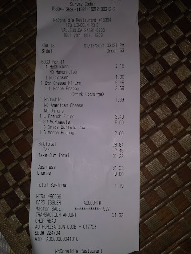Read moreFirst, I barley complain unless it's for a good reason. I was in line first deciding what I wanted to order, another costumer rudely tells the new Manager that she is ready to order. Instead of the Manager asking me if I was ready to order she ignored me by helping the other costumer. I was puzzled. I ask to speak to a manger and they sent me a women who could barley speak english amd said sorry, sorry, Sorry. I felt horrible for complaining. However, at the same time I felt totally rudely mistreated. I ask for the district Manager or someone up higher to speak to and the women who couldn't speak english tried to give me a number on a napkin but instead her hand was shoved away from a younger worker who pretended to be the Manager and asked what happen and I explained the situation to him and he said sorry about what happen and I will give u a burger. I didn't want a burger. The fact of the matter is that the Manager mistreated me. Not sure if anyone would actually read this and it might sound petty but again I work everyday having to commute to work and was hungry. What made it worst was that my vehicle overheated and all I wanted was something to eat while waiting for the tow...
