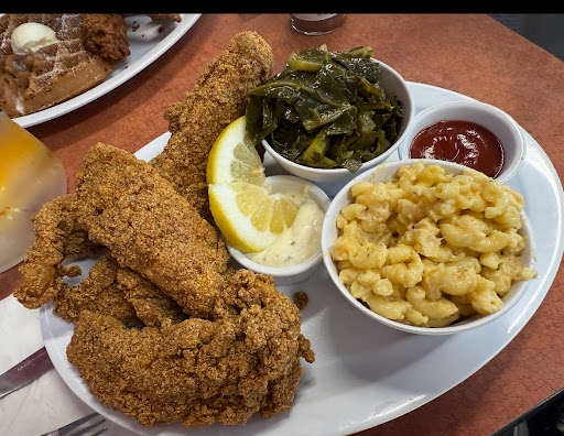 A visit to Vallejo proved fruitful. We had a meeting to go to with time to spare. On our way to find location we spotted Noonie’s Place. Once we found where we would meet later we headed back down the road and stopped in. We were greeted right away We picked a table n sat. Relaxed homely atmosphere. Good tunes playing everyone happy. Where I was sitting I could see right into the kitchen everyone was busy busy. People came in and out picking up orders. Our food came out hot and fresh. I ordered chicken and waffles. The waffle was light n fluffy. It had a nice spice to it. Chicken had a nice crunchy breading. I stacked and dipped, dipped and stacked. I ate everything. My son ordered Basa plate with greens and Mac and cheese. We shared bites. Very tasty. He too finished all his food happily. We sat enjoying our meal chatting and sing along to the music. We sent these pics to the family chat..everyone agreed we would be back. Thank you for a welcoming us and a great dining experience. My son kept saying how full he was but still had room to...