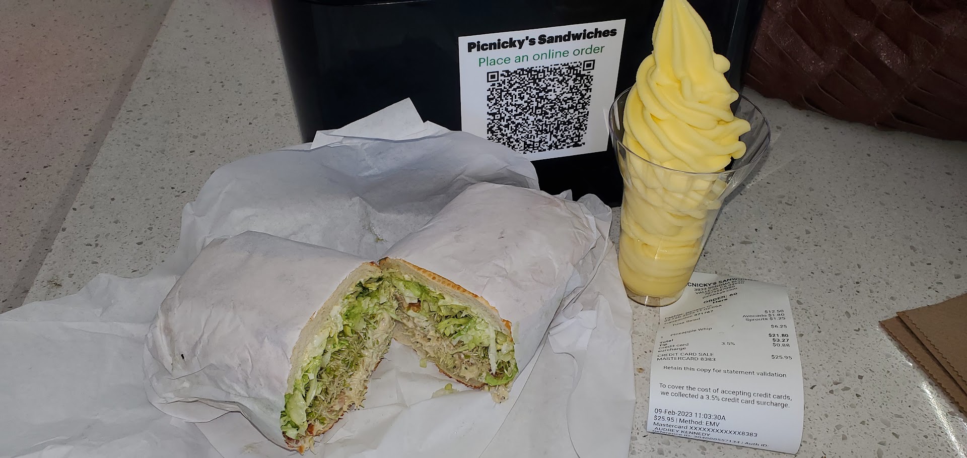 Read morePicnicky's Sandwiches Shop is centrally located and one of Vallejo people's choice stars. The signs out front make it easy to find. There is free street and a side parking lot available. They have made it pretty easy for mobile orders or in person ordering. Today, I placed my order with a friendly staff person inside the shop. I ordered the sausalito sandwich with everything on it, mesquite barbecue chips, and a fountain drink. My sandwich was made fresh and tasted good as usual. The decor and ambiance are upbeat and friendly. l really wish they had a bathroom available for paying customers. Dine in eating would also make it easier to enjoy the sandwiches more frequently. Will come back....