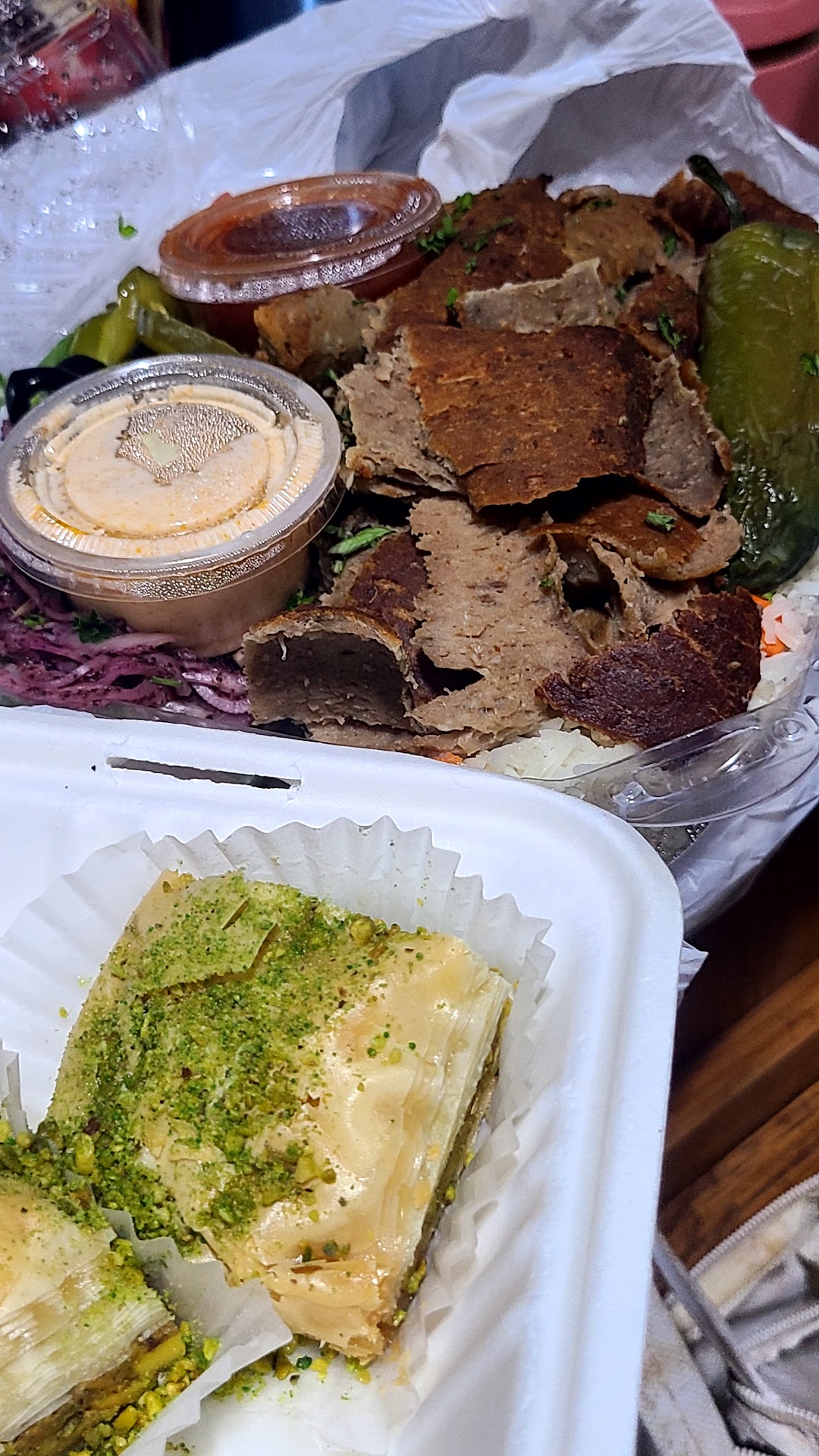 Ordered over the phone for pick up. Ordered lamb and chicken kabobs. Went to pick up the food and when I got there I saw the pistachio baklava and decided to add one. Very nice gentleman running the place and I can tell he puts his heart and soul into making sure his customers are satisfied.