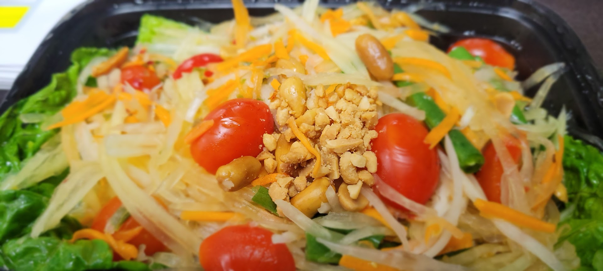 I'm not sure how long this place has been here, but I'm sure glad I found it today. I ordered takeout online at 12:32 p.m. and received notice when it was ready for pickup, which was 12:40 p.m. Now that's fast! I tried the Green Papaya Salad and the Spicy Thai Basil Chicken with steamed rice. $33.23 was the total. The salad was wonderful. You can order your preferred level of spice from 0-5. I love spicy food and ordered it at a spicy level of 3. I wouldn't suggest anything hotter than that unless you are a pro. I was wiping the sweat of my brow at a level 3. I thought it was just the right amount of heat. I was pretty full after eating the entire salad, so I only had a few bites of the main dish. I will eat the rest for lunch tomorrow. Next time, I will dine in so I can give my take on the ambiance. Will definitely...