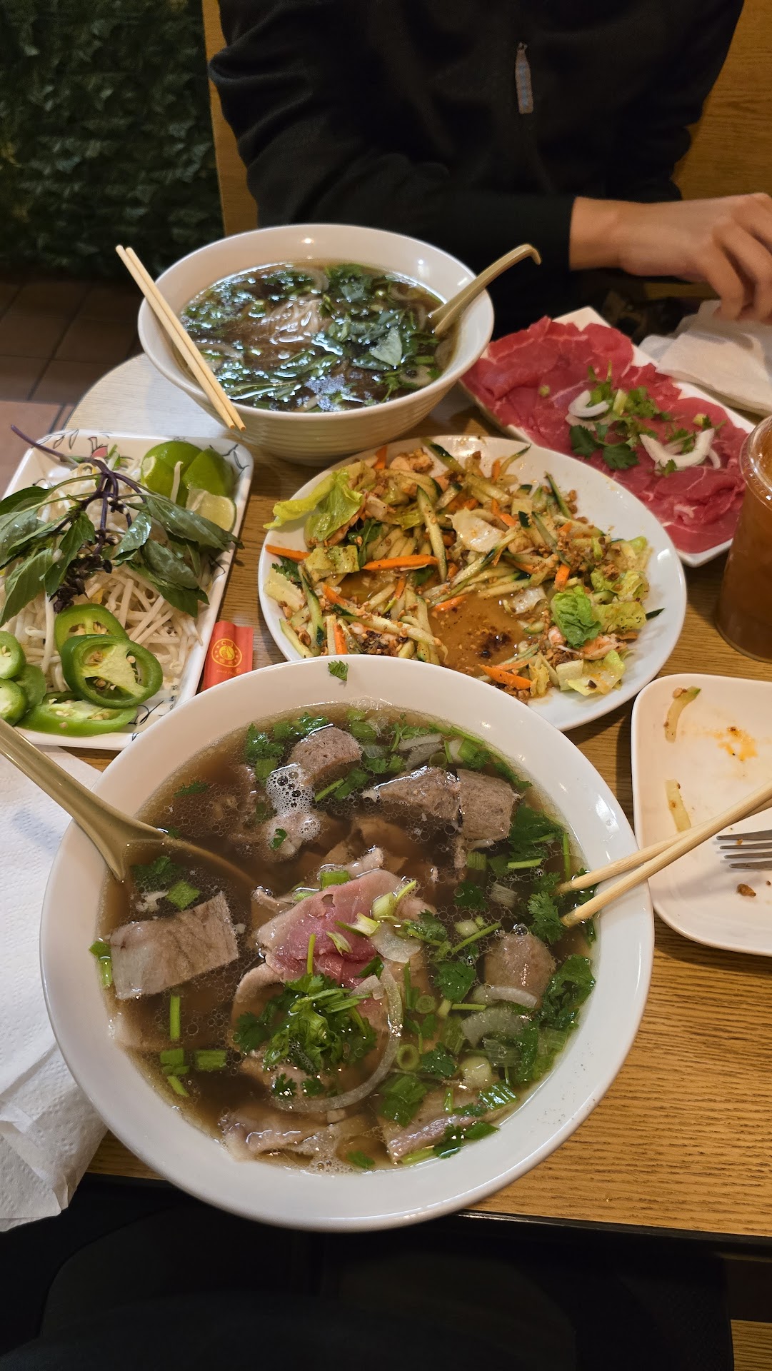 Very sweet young couple who run this place by themselves while taking care of their 2 kids. It wasn't crowded during lunch time today (Saturday, 12/14). I ordered pho dac biet and my friend ordered pho tai, both large. We felt the large bowl would be enough and the XL would have been too much for us unless we ordered one XL bowl and split it. The first thing I do when I try noodle soup dishes is to taste the broth. When tried the broth, I thought "Wow, it reminds me of my mom's homemade pho," 😳 and I do not say that often with the pho restaurants I have been to. Not only that, I finished the whole bowl including the broth! I rarely finish the broth because of how salty most restaurants make it. The portion of meat, noodles and soup felt like the right amount.