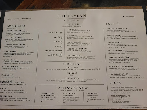 Read moreI had a very poor experience here. My fiancé and I decided to go on a date night so we made a reservation, got dressed up, and drove 30 minutes to The Tavern. We were seated immediately and our waitress came over and gave us bread and filled our water glasses. She then asked if we wanted drinks, we had JUST sat down so we said oh we’ll look at the menu and she said ok I’ll be back. Then an older couple was sat next to us and our waitress went to greet them and they ordered drinks so she took their drink orders, walked away and came back a few minutes later with their drinks. She still had not come back to get our drink order so I assumed she’d come take our order after giving them their drinks but instead she stayed at their table to read them the specials. I thought ok so she’ll come get our drink orders when she finishes reading them the specials... but no. The couple then began to order their food and so we were ignored for 15 minutes without even ordering our drinks. Finally she came over and asked if we wanted drinks but by then we were ready to order our meal so we ordered everything. My fiancé ordered a sangria which took 8-10 mins to get to us. When our food came out it was delivered by someone else (not our waitress) and she didn’t come by so we had to go ask someone else to bring us salt. I ordered the filet of beef and it had NO flavor, it was over cooked so it had a burnt taste and it was juicy but flavorless. For $36 I was expecting something amazing but I would rather be eating an $18 filet from Outback! My fiancé liked his dish (ahi tuna flourtine). We were more than half way down with our food by the time our waitress checked in. We paid and left. I was just so disappointed for being treated so poorly. I believe the couple next to us who got amazing service was related to one of the waiters or something (overhead from the waiters) and my fiancé and I look very young, so I guess the waitress probably just didn’t care about giving us good service. I hope she enjoyed the 20% tip we left her even though she didn’t deserve it (i was a waitress for 4 years so I will never tip poorly no matter what). I will never...