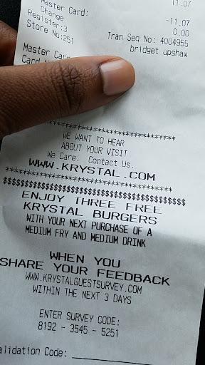 Read moreWorst experience ever! Went out for a milkshake, and really like the ones that Krystal offers. Pulled up to the order box, then waited almost 4 minutes for someone to answer, just to be told "please hold". Minutes later when he came back on, I asked for a shake, but the ice cream machine was broken. Now, I'm trying to keep from getting too angry, and decided to leave. Oh yeah, I can't, because once you're in the drive-thru line, you really can't get out that easily. One car in front of me was the only thing keeping me from leaving. There were two cars in front of that car. I waited 9 more minutes for them to get the order ready for the car in front of the line, and who knows how long that poor sap had been waiting. The whole draw to fast food, is that it's actually fast food. Once they got their order, the line moved, and I was able to escape. Can't believe the amount of time I had to spend there to leave empty handed. The staff really needs to put a little more effort into their customer service. Extremely displeased! By the way, Google made me give them one star. They...