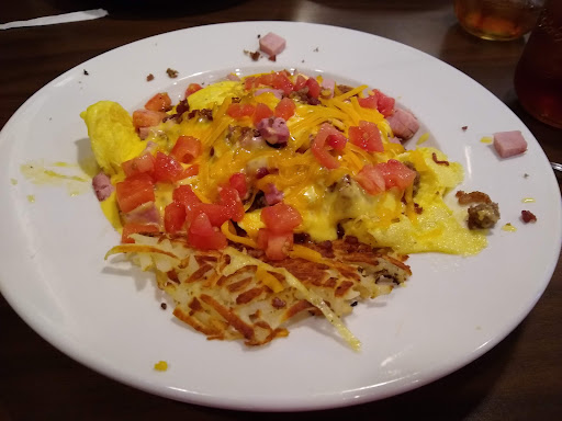 Never eaten here before but heard it was pretty good. Upon entering the host was just adorable and my daughter certainly appreciated his welcoming demeanor. He was personable and asked our plans for the day. Later I heard him ask the same of other ppl he sat so that's a nice touch of hospitality. Our server was nice and timely on refills. The whole joint was pretty loud which is surprising cuz there was carpeting. Actually it's surprising to see carpeting in restaurants at all these days since it's not very hygienic and difficult to keep clean. This carpeting was dark brown and just dingy looking. It gave me the creeps thinking about what all had to be in there. I noticed hooks at the end of the booths for purses and coats which is a thoughtful design. The place was very clean, as were the menus. I hate getting dirty menus. Overall it could benefit from a lil deco updating as everything just seemed a tad worn. I ordered the Everything breakfast. Man was it phenomenal! Food was very tasty. My daughter got Belgian waffles, bacon and a side of hash browns, which were all delicious as well. Portions were plenty large enough for 2 meals. After our waitress brought the check, I laid my debit card on top of it at the table. I noticed she passed by several times and ignored it. My daughter said she looked right at it and walked away. As I mentioned earlier, it was my first time here. It took me awhile to realize payments are done at a register at the front of the restaurant. It would have been nice for the waitress to just politely inform me of that instead of actively ignoring me and letting me sit there looking like an idiot! Aside from that annoyance, it was a nice experience. The cashier was very courteous and directed my attention to the survey on my receipt for a discount on...