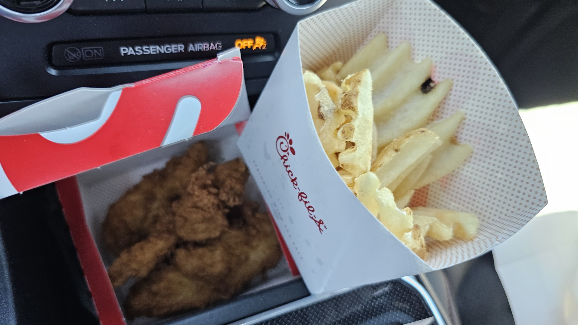 Read moreThe food good as usual BUT I felt bad for a young guy that stood there for an hour waiting for his $300 call ahead order it was supposed to be ready at noon he told the cashier's he was there and that's where it stopped and he sat there till 1. The manager said no one told him that he was there until he finally got aggravated enough to say look somebody needs to find where our food is at everyone else is getting their food and I've called mine in way ahead of time. The young cashiers seem to be very confused every time I go in there. Something I order all the time they told me they didn't have but when I said I get it all the time then they finally found it. They have forgotten to give me my shakes until I walked right back in the doors after I walked out realizing they didn't give them to me then I had to wait another 10 minutes for them. I love going to Chick-fil-A but they need to train the cashiers better. And teach them how to notify a manager or someone of large call-ahead orders so they aren't waiting for an hour. I felt so bad for...