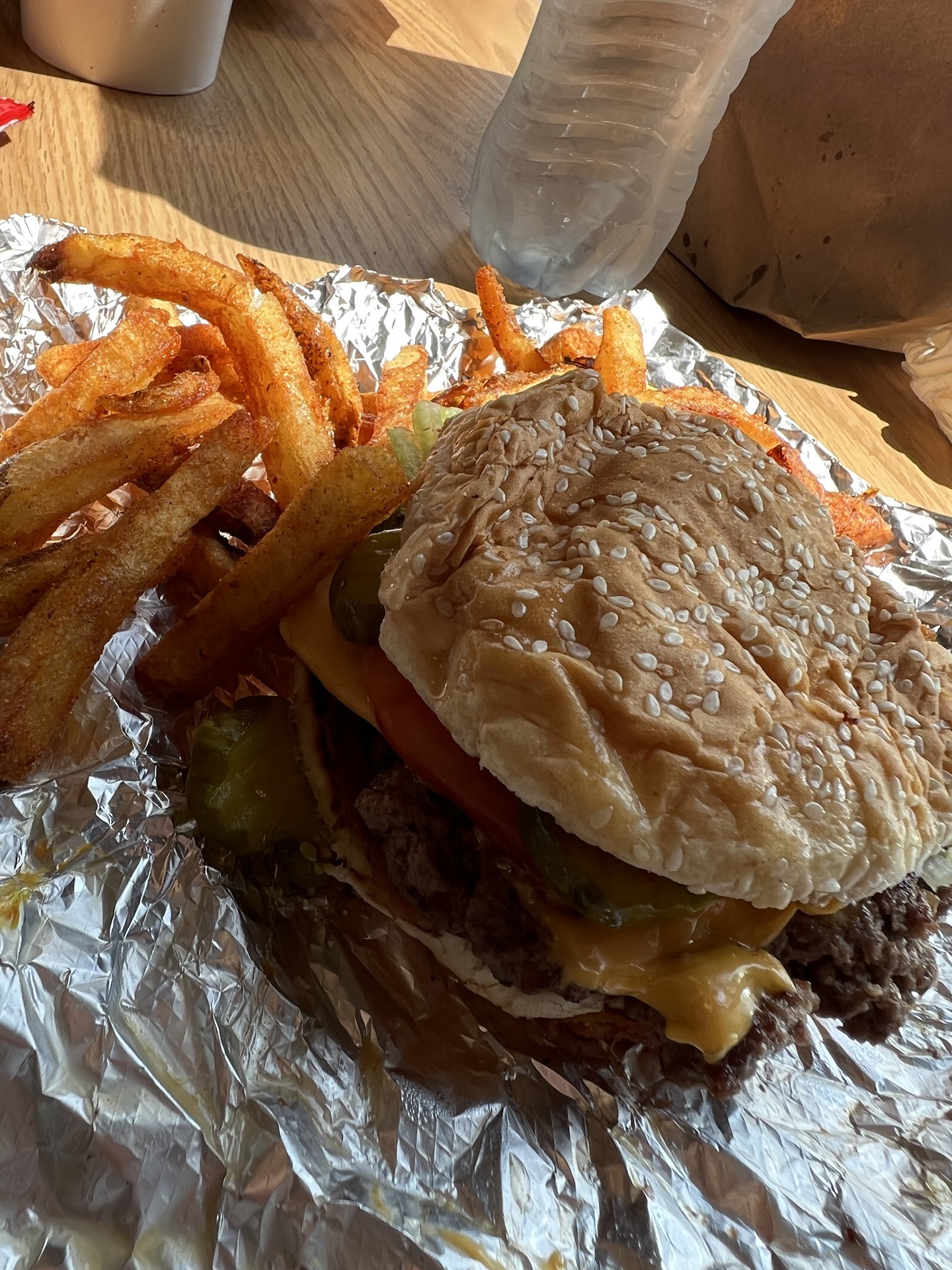 I went to Five guys last week, Tuesday evening I believe it was. I just wanted their famous French fries, known for quality, flavor, and QUANTITY. Let's face it, they are known for the extras in the bag, the generous portion I'm sure I'm not alone in saying I've grown accustomed to. Well, let's be clear, those days are OVER! I ordered a medium, knowing that would be more than I needed and sure to satisfy my french fry craving. Big disappointing mistake. I got less than half the normal amount of fries. My cup wasn't full, and it surely did not "runneth over!" I wish I could say it was a one time experience but my bestie confirmed by the photo of her sad sack of fries, that this is the new norm. I'm sorry but $4.00 is steep for potatoes!! I will be satisfying my French fry craving elsewhere and I have found my new...