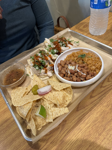 Fast forward to the food.. we ordered chicken street tacos and a burrito. The food almost beat us to the table as we sat down. I was weary at that point. However, the food looked fairly fresh. However I tell you openly and honestly that it lacked 100% of the flavor. Like, I literally thought I had covid for a second. Not to be rude but the chicken looked/tasted stewed and had zero seasoning. They put a generous amount of the chicken on the items so itâs impossible to miss the absent flavor. The salsa had charred tomato skin mixed throughout (typically charred veggies are sweated after and skin removed). The first thing I said was âI donât taste anythingâ (about the salsa). I thought maybe that theyâve forgotten to use basic seasoning đ§ or something of the sort. They also only give a TINY serving of the salsa. Maybe 2 tablespoons MAX. The chips are claimed to be homemade but look/taste like Tostitos bagged chips. I would be surprised if they werenât.
