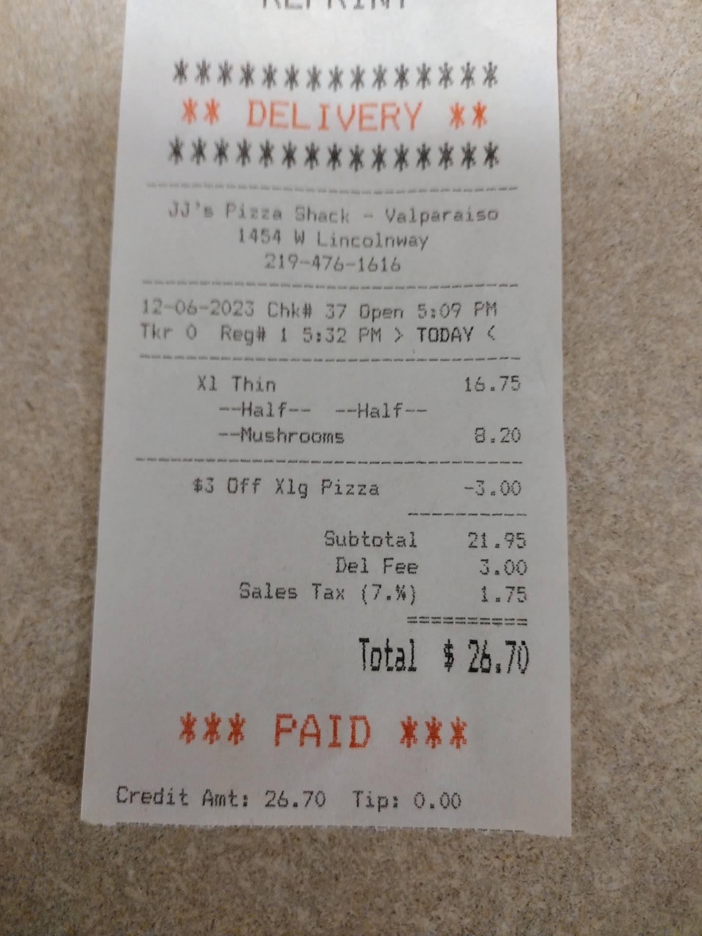 Read moreThis place was everything I was hoping for out of a community minded eatery. I was here for about an hour. The entire time I watched they were busy. The people around here LOVED the food. Folks were coming in non stop to pick up orders, calling continuously to place orders. I noticed a strange phenomenon in which as people were carrying food out others were jumping at the chance to hold the door for them. Until my own food arrived I didn't realize why. J&Js stacks topping on their pizza until they are heavy. The customer culture here just knows that a person carrying a pizza from this place needs a hand with the door. I started this review with that thought because if you are looking for dining ambiance this ain't the place. They have a lot of pinball machines and that's cool but I can tell the owners put priority on food which once you try it you will understand. If you are looking for good pizza try this place, just don't be upset about the wait. The wait is because they are busy. They are busy because they are good. Well...